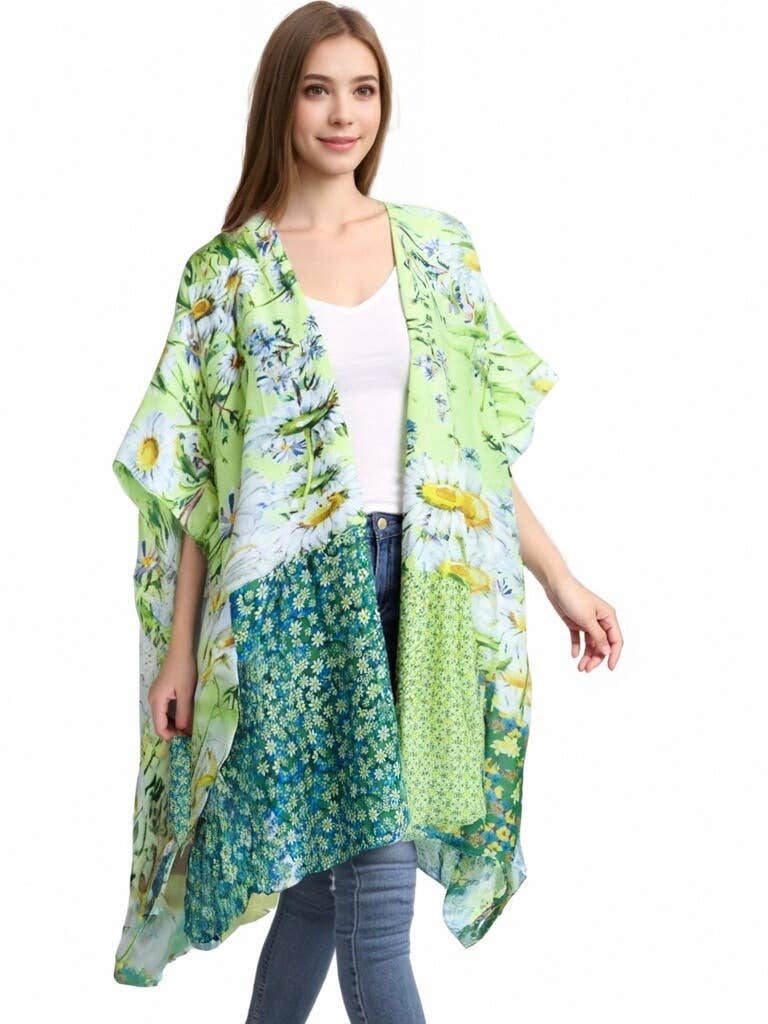 Pink-Aqua Daisy Patchwork Kimono