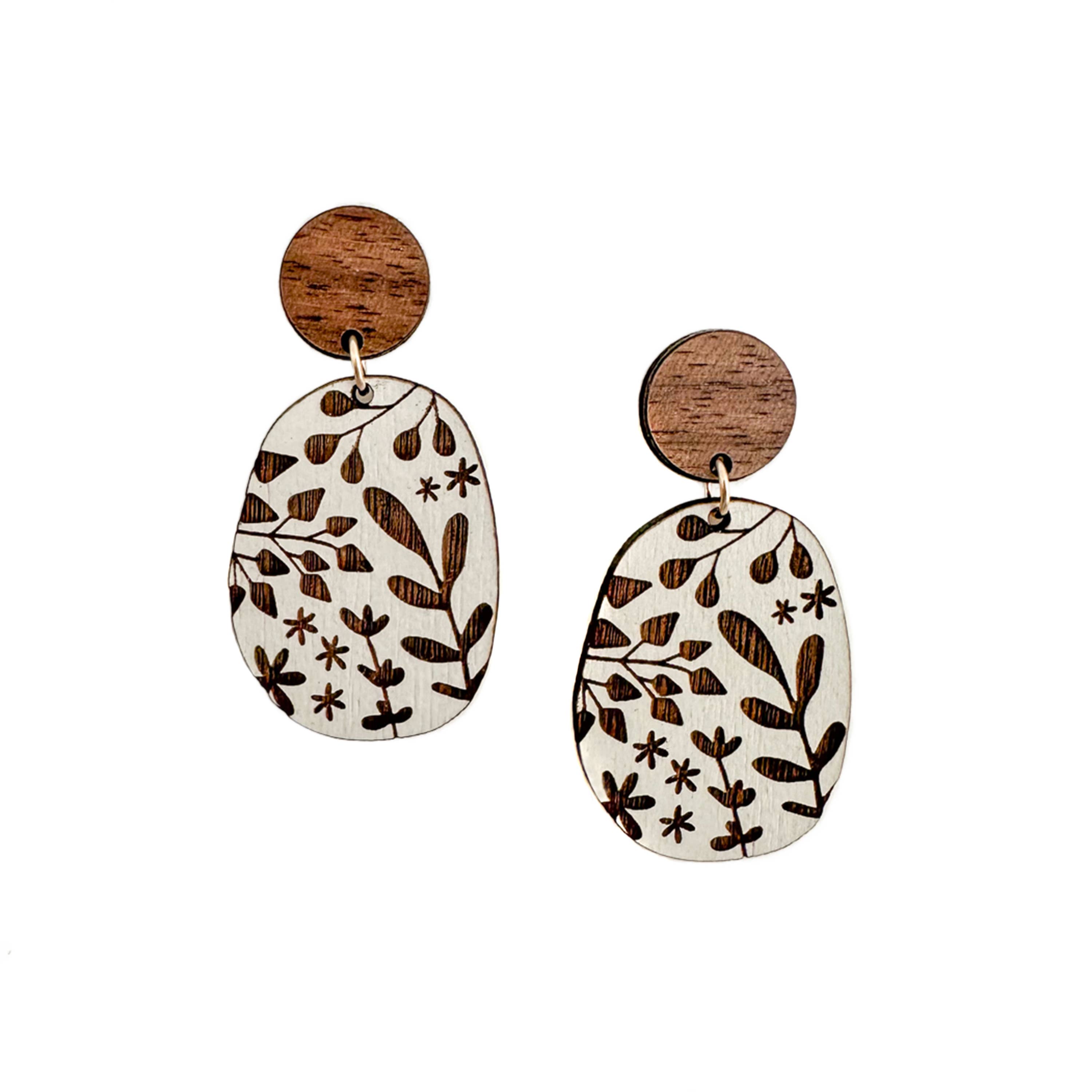 Vores Cyanotype øreringe er håndlavede ved hjælp af ahorntræ og bæredygtigt indsamlede botaniske materialer fra vores haver i Maine. Hvert par er et originalt kunstværk lavet med naturen og solen, og ingen par er helt ens. Produktdetaljer: Længde: 1" Materialer: træ, sterlingsølv Vi inkluderer et informationskort med hver ordre, der forklarer cyanotype-processen. Perfekte til botaniske haver, blomsterhandlere, havegavebutikker og butikker, disse øreringe er et ideelt valg for kunder, der søger betænksomme, miljøbevidste gaver eller unikke accessories. Hvert køb bidrager til genplantningsindsatser gennem vores partnerskab med One Tree Planted. **Vi oplever, at på grund af øreringenes unikke karakter, sælger de bedst, når kunderne kan se flere muligheder på én gang.** De, du modtager, kan se anderledes ud end det, der er fotograferet, men alle vil være smukke.