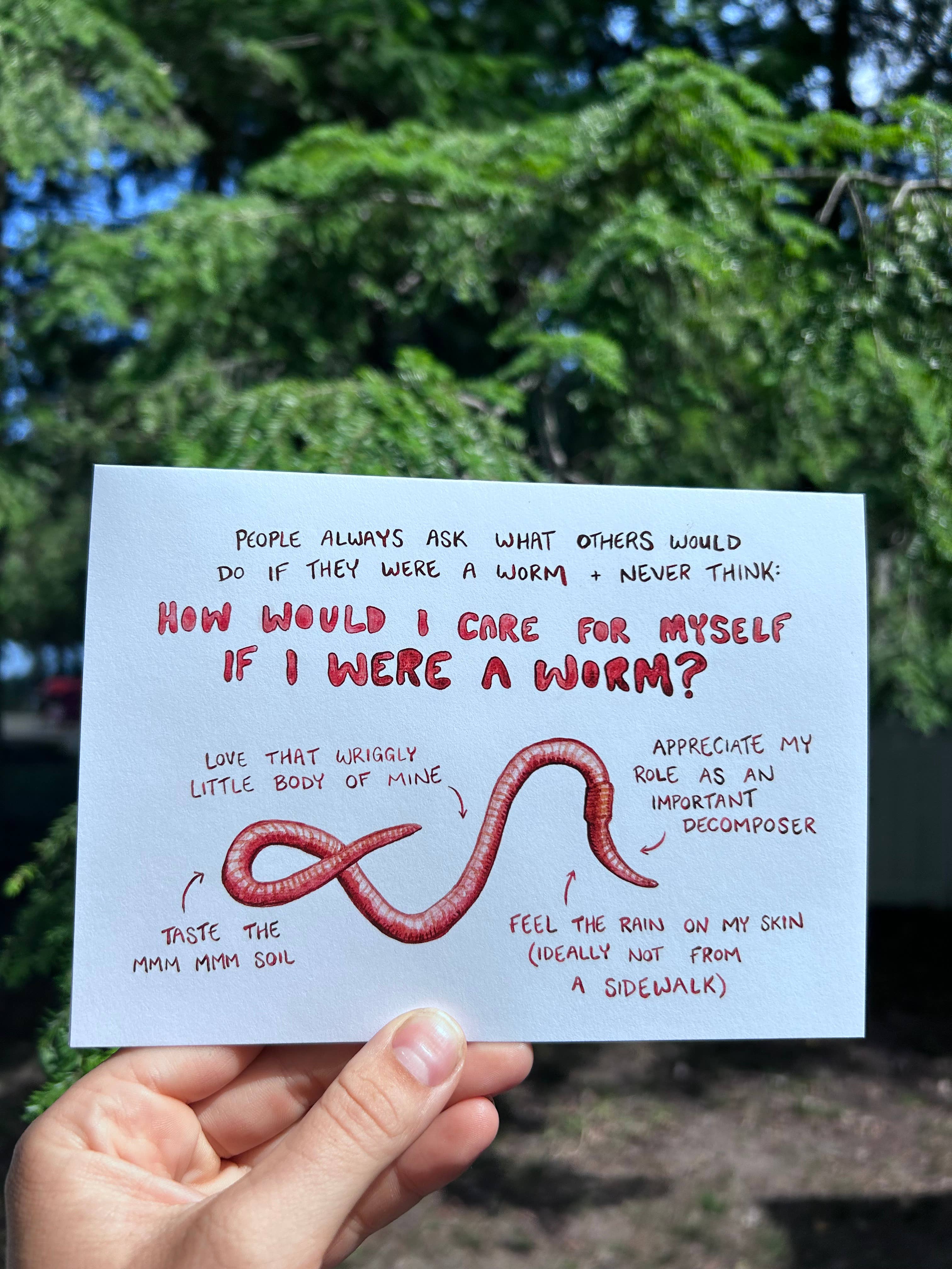 Grøn kofangersticker med gul og lysegrøn tekst "Mit kærlighedssprog er bekræftelsesorme" og små lyserøde orme. Vandtæt, vejrbestandig vinylsticker. 3,5 x 11 tommer.
