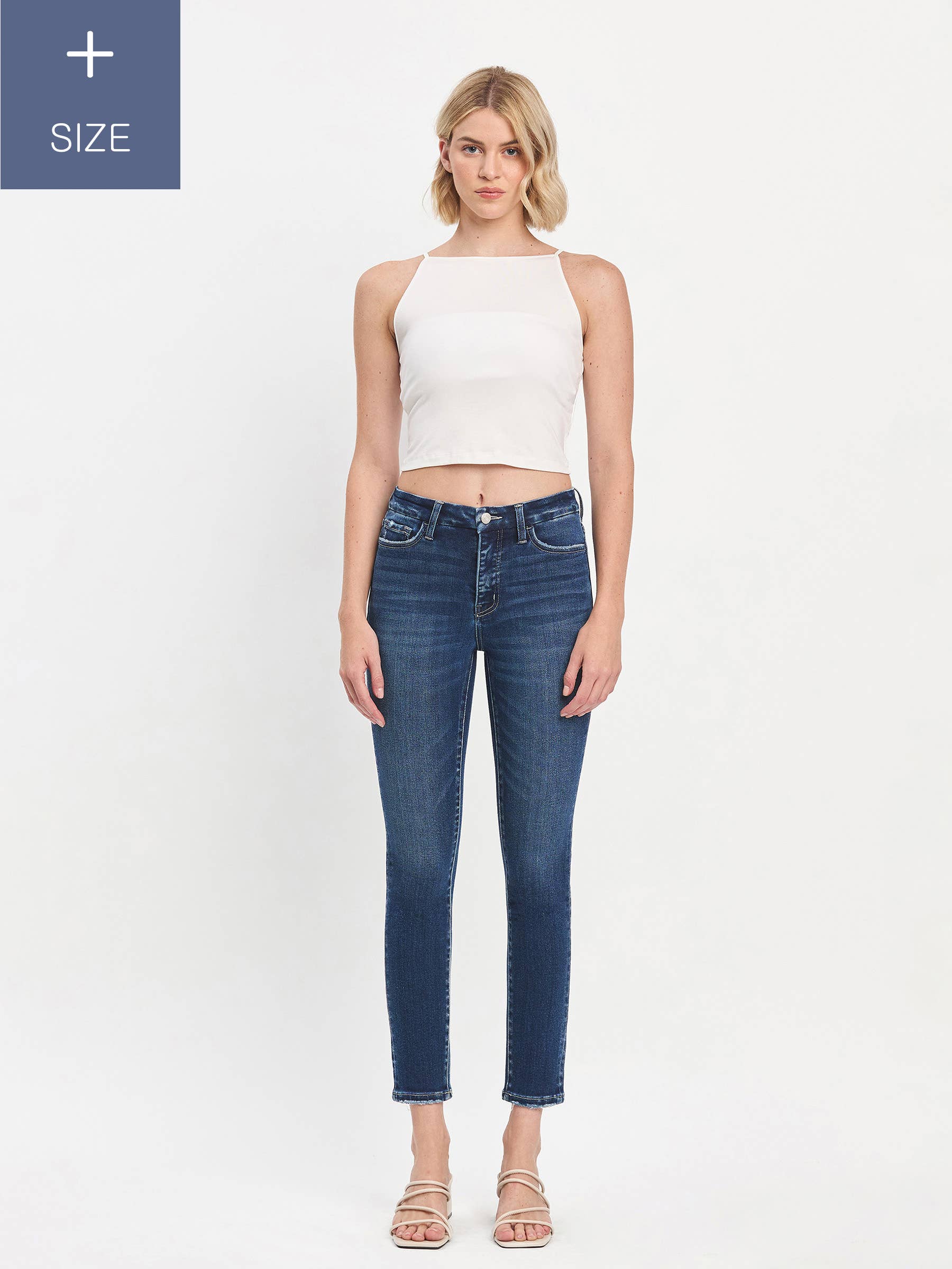 SLIM BREDE JEANS I STORE STØRRELSER MED MAVEKONTROL MED MELLEMHØJDE LV1358-P