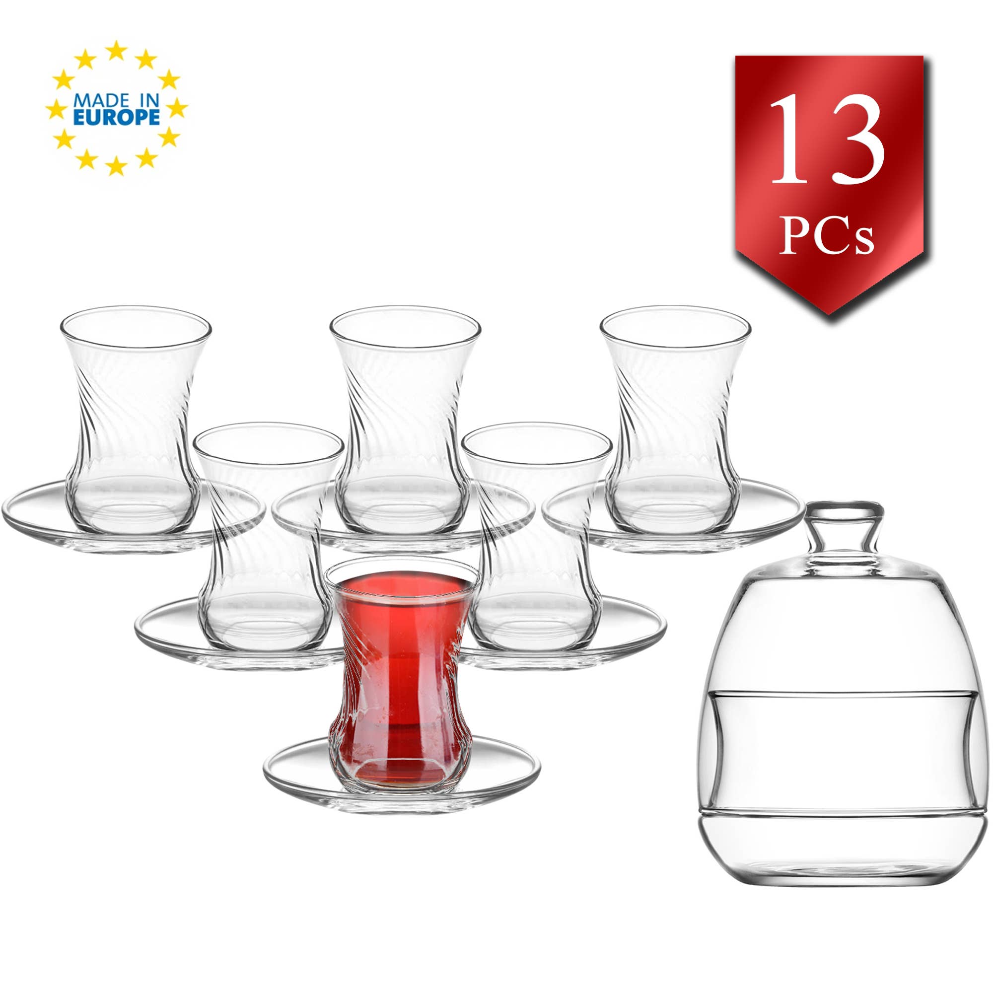 Unikt design tyrkiske teglas: LAV Vera traditionelle tyrkiske teglassæt er specielt udformet til at forbedre nydelsen af tyrkisk sort te eller enhver foretrukken varm drik. Tyrkiske briller af bedste kvalitet: Disse traditionelle tyrkiske tekopper er lavet af materialer af høj kvalitet, hvilket sikrer holdbarhed, varmebestandighed og et let design. Løft dine præsentationer med elegancen i dette glassæt. Let at rengøre og sunde: Disse briller er lavet i Tyrkiet ved hjælp af glasmateriale, der er let at rengøre og hjælper med at bevare integriteten af dine produkter. Glas er et naturligt, 100% genanvendeligt og miljøvenligt materiale. Autentisk sæt med 6: Perfekt gave: Hvert glas har en kapacitet på 6,1 Oz (180 cc) og er lavet af europæisk glas af høj kvalitet, hvilket giver fasthed og holdbarhed. Dette sæt er også en fremragende gave til enhver lejlighed.
