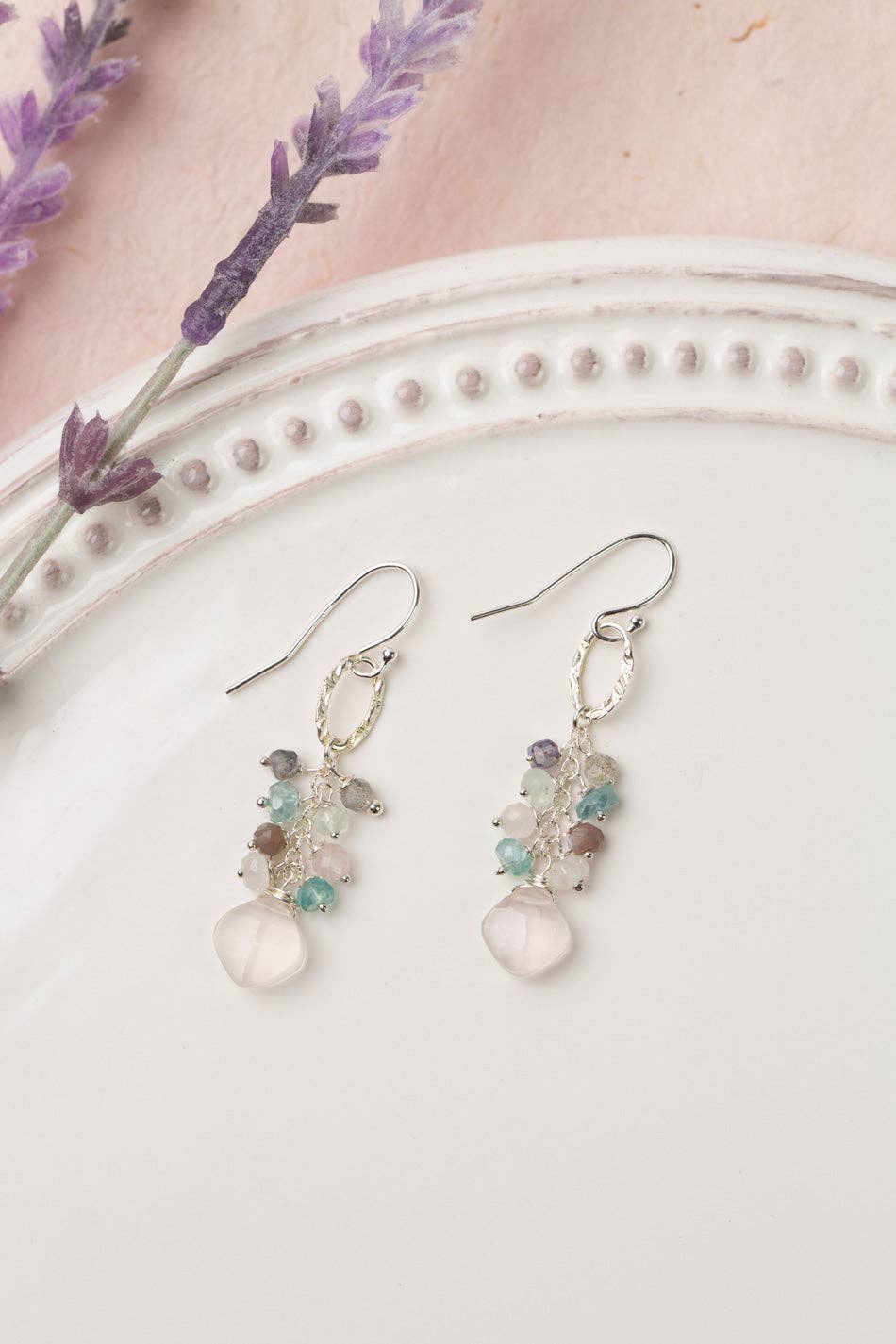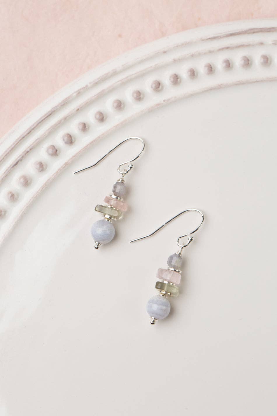 Fae Rose Quartz, Blå Apatit, Prehnite Med Blå Blonder Chalcedon Enkle øreringe