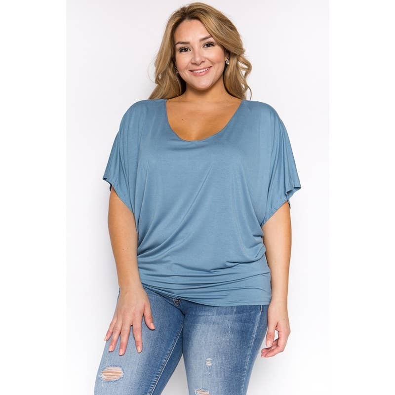 PLUS STØRRELSE FIRKANTET HALS RUCHED RIB STRIK TOP. 86% RAYON, 14% ELASTAN.