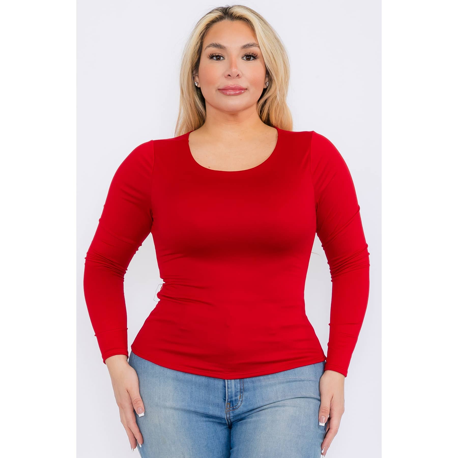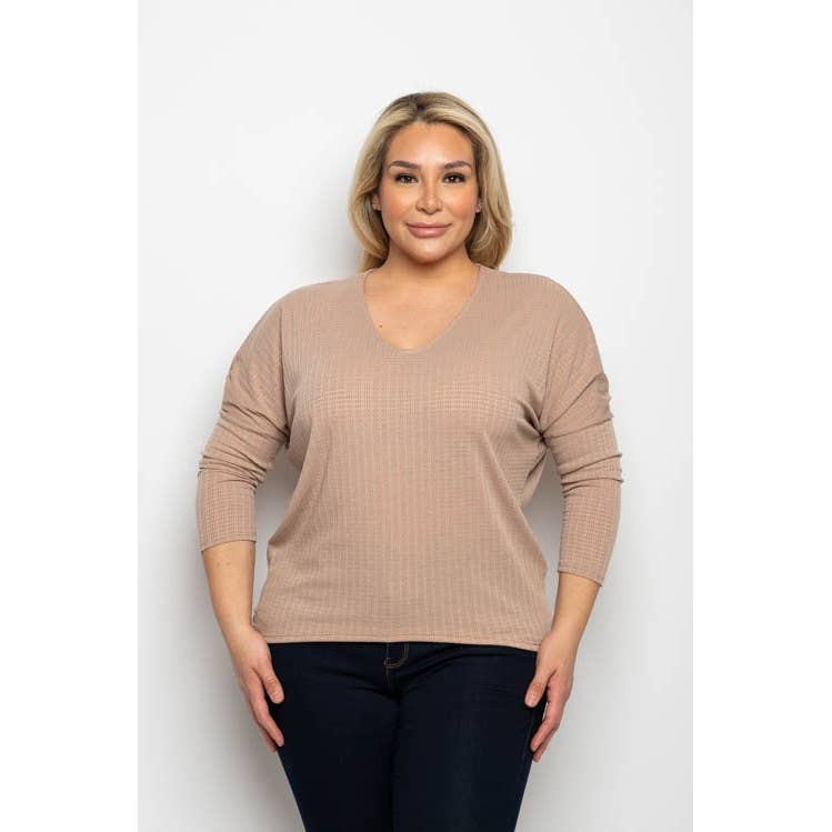 PLUS SIZE STRIK V-HALS AFSLAPPET PASFORM LANGÆRMET TOP