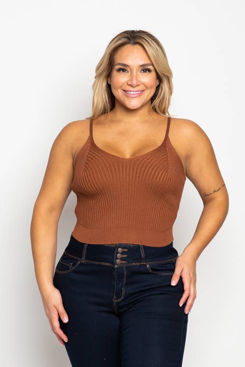 PLUS STØRRELSE FIRKANTET HALS RUCHED RIB STRIK TOP