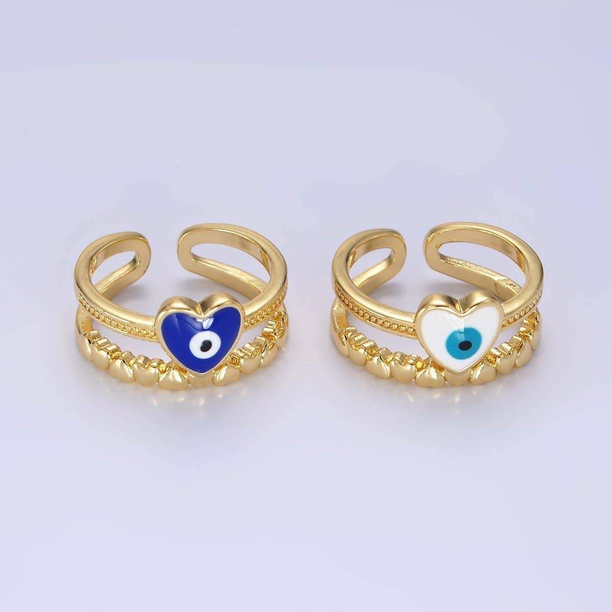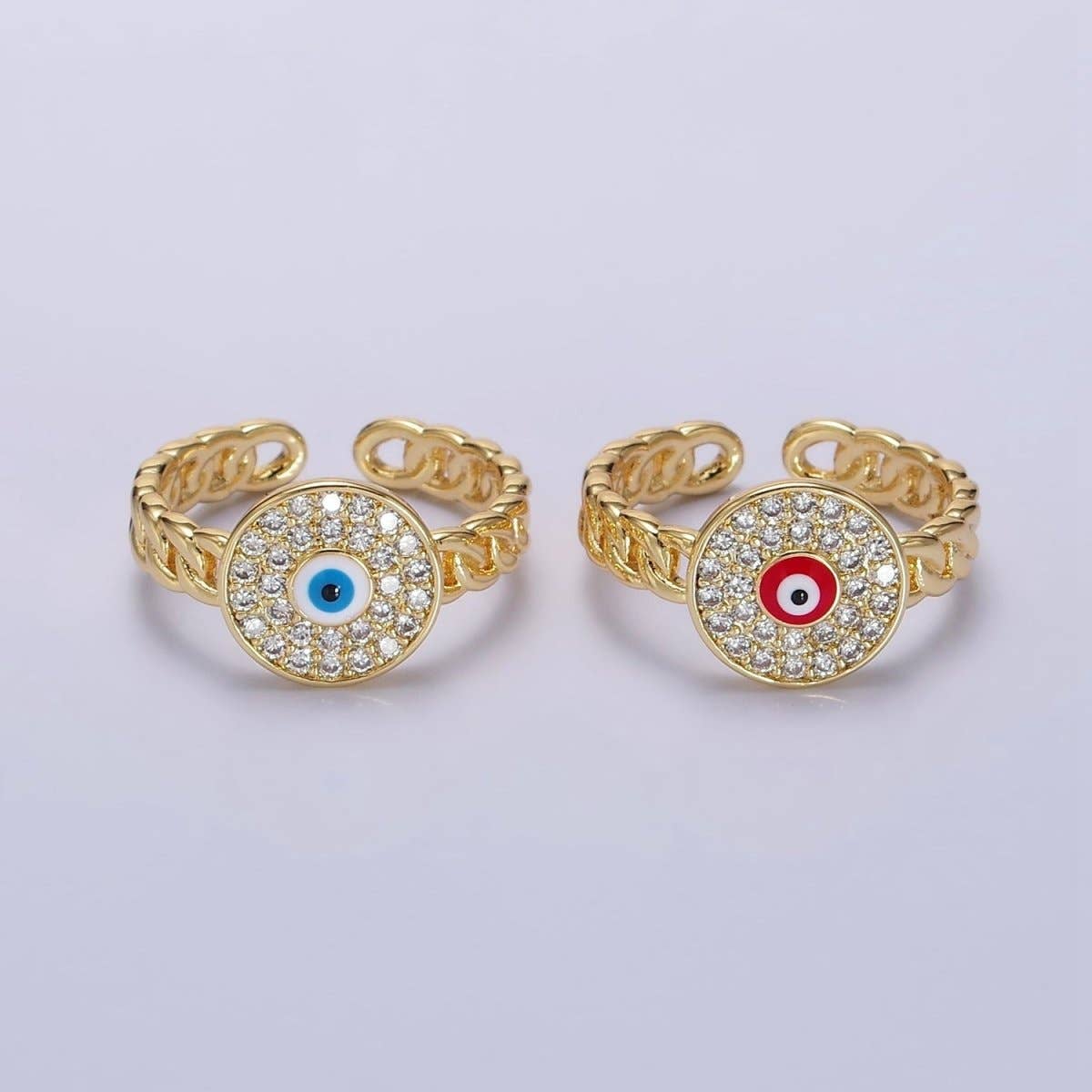 Hvid, Teal, Blå, Sort Rundt Ondt Øje Emalje Klar CZ Stabelbar Ring U-073 - U-076