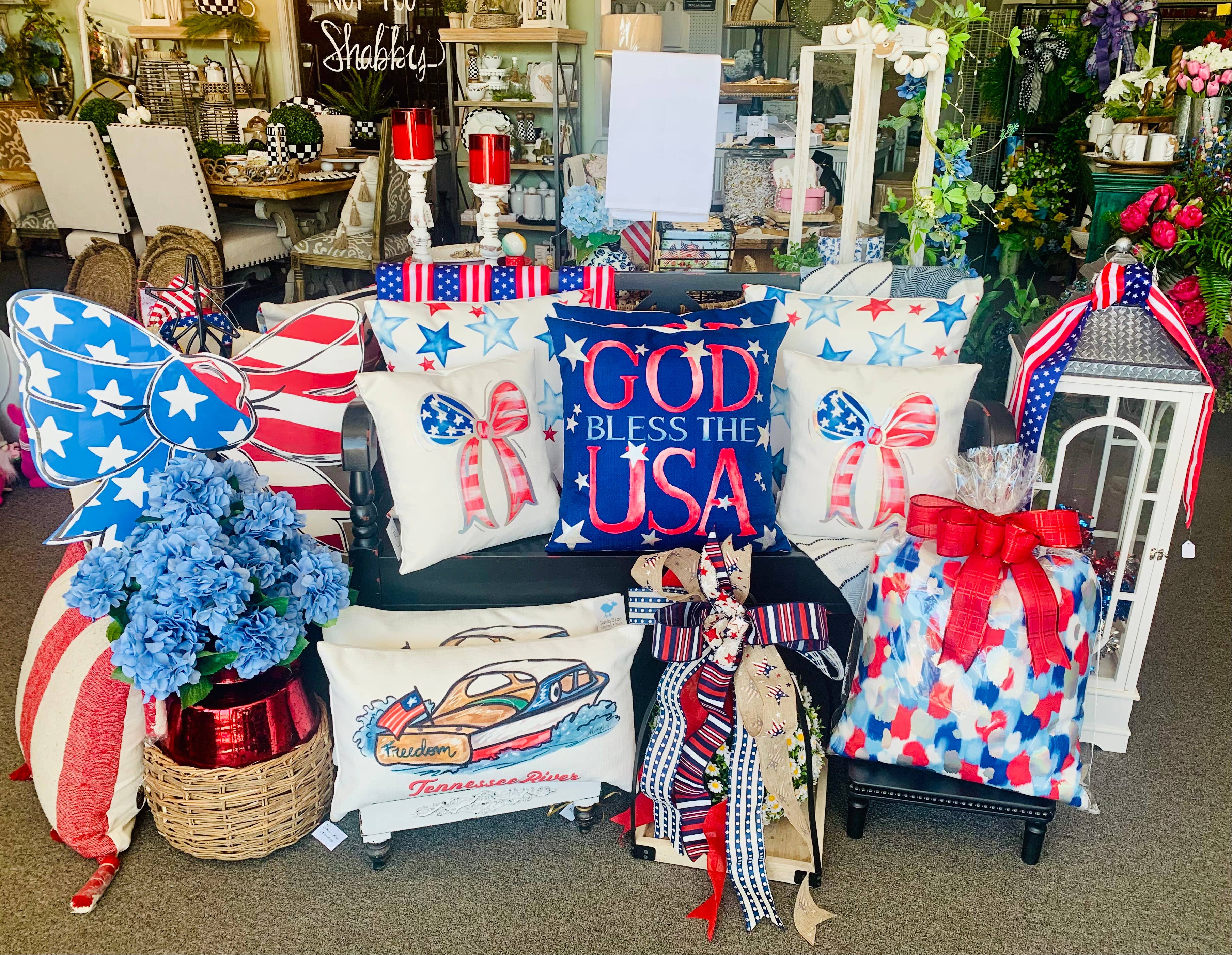 SKU: RBPV-1238 Fremstillet i USA Anledningstema: Memorial Day og USA's uafhængighedsdag Farve: Blå og Rød Pudeform: Kvadratisk Sæson: Sommer Tema: Patriotisk Produktsprog: Engelsk Vægt: 1,36 kg (3 lb) Mål: 40,6 x 40,6 x 10,2 cm (16 x 16 x 4 cm)