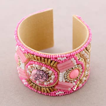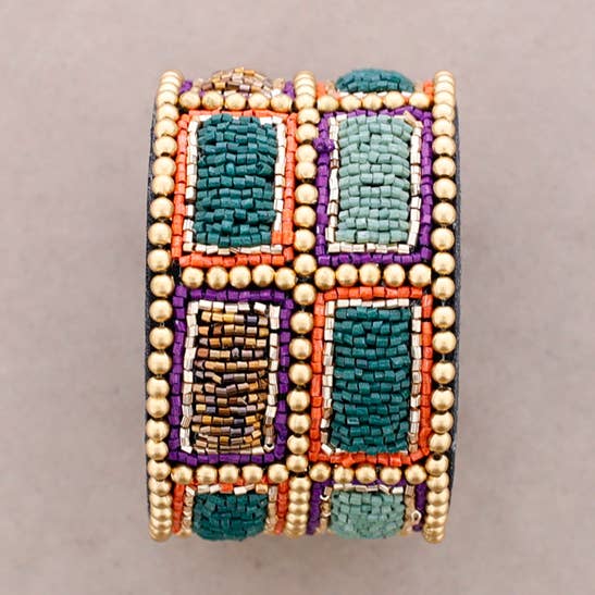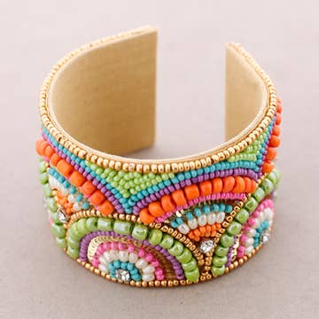 Justerbart armbånd dekoreret med farverige perler.