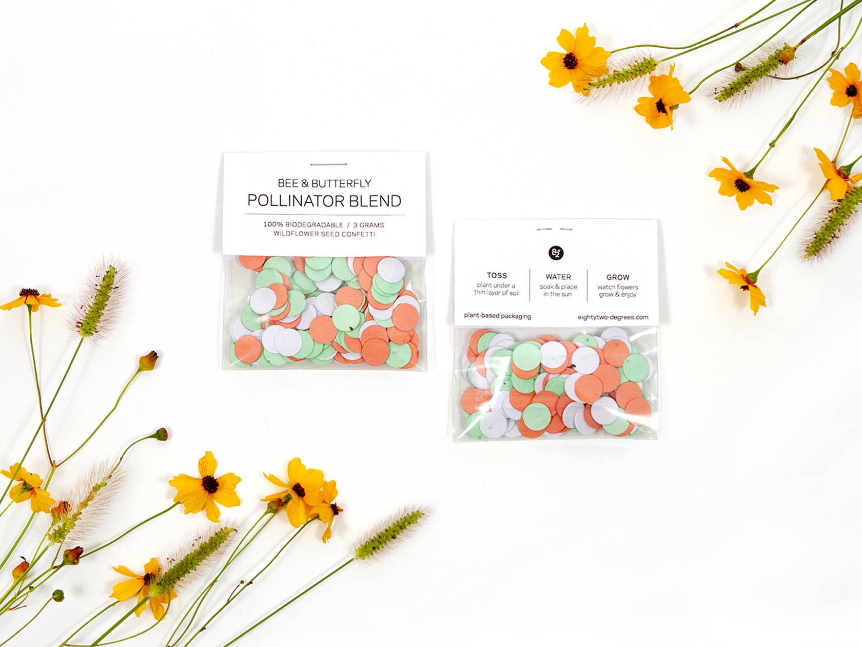 Fejr med et strejf af natur! Vores individuelt pakkede vilde blomsterkonfettipakker er klar til at kaste eller bruge som dekoration - helt uden dårlig samvittighed. Hvert stykke er lavet af bionedbrydeligt papir fyldt med vilde blomsterfrø. Kast det, se det vokse, og hjælp lokale bier og sommerfugle til at trives. Fest, plant og bestøv - din fejring blev lige lidt grønnere! 🌸 🐝 Detaljer: - 3/8" rund - 80lb plantbar øko-konfetti - hver pakke indeholder 3 gram konfetti - 100% bionedbrydeligt papir lavet af post-forbruger affald - indlejret med NON-GMO vilde blomsterfrøblanding - plastemballagen er fuldt komposterbar - vilde blomster er alle sikre, indfødte blomster godkendt til plantning i USA, Canada, EU, UK, New Zealand og Australien af CFIA og USDA - lavet efter bestilling i USA - hver ordre planter et træ gennem One Tree Planted
