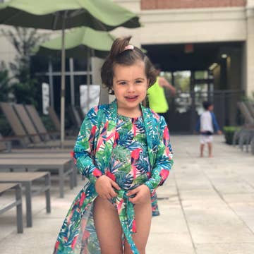 Denne lette, hvide cover-up til badetøj har en åben, åndbar hæklet struktur prydet med et charmerende blomstermønster og bølgede kanter, hvilket gør den til den perfekte, legesyge kjole til solrige stranddage. ❤ Hvert solgte produkt giver 5 måltider til børn i Nordamerika og resten af verden Egenskaber: ~ Åndbart og let, åbent hæklet netstof Sammensætning 55% viskose, 45% polyester Pleje Maskinvask koldt på skånsomt program. Må ikke stryges eller bleges. Hæng til tørre