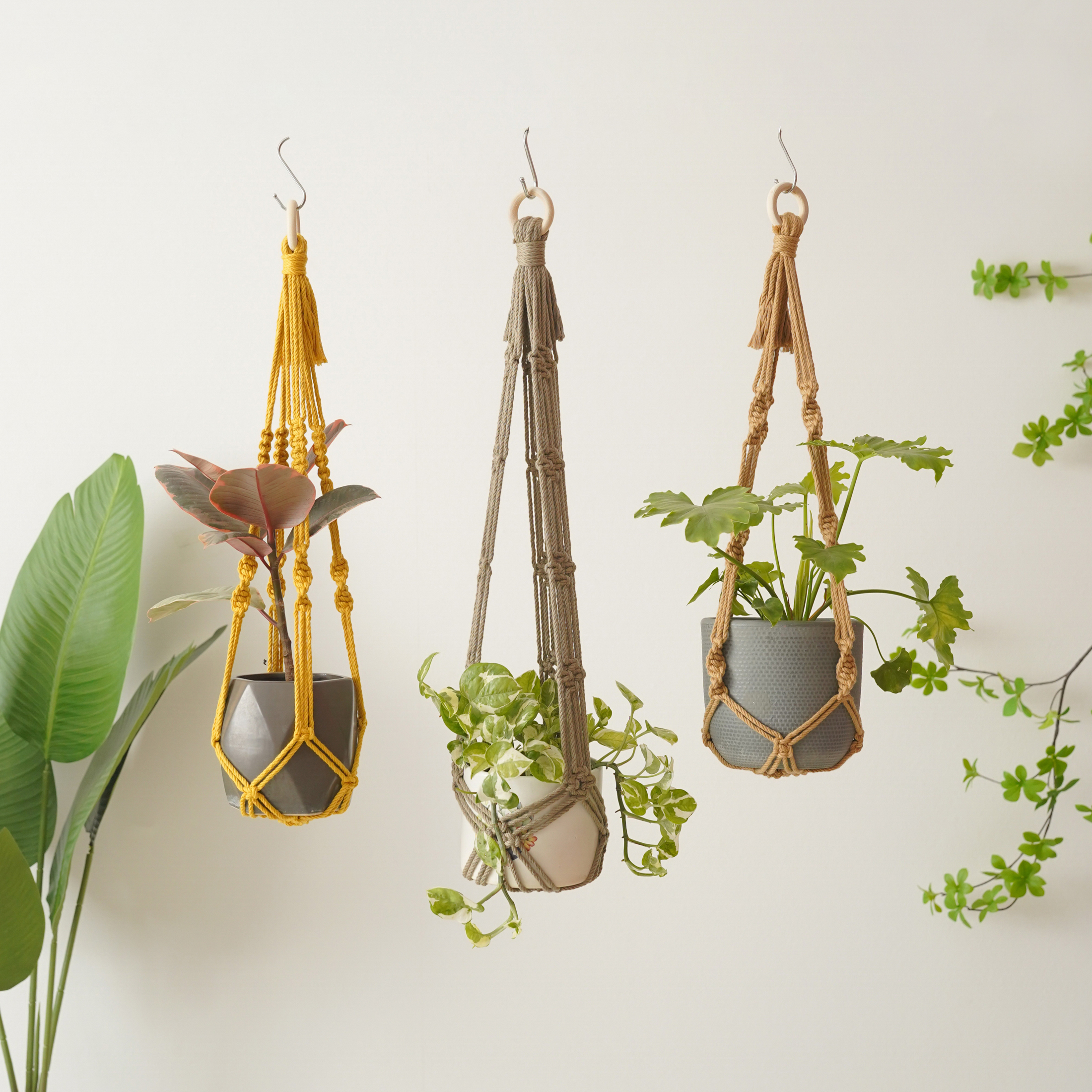 Bring en dristig og uhyggelig stemning til dit hjem med denne gotiske macrame plantehænger Halloween-dekoration, der blander charmen fra gotisk plantehænger, Halloween plantepynt og boho vægophæng i ét unikt stykke. Håndlavet med robust macrame snor og træ, er denne macrame hængeplante perfekt til at fremvise dine yndlingsplanter, mens den også fungerer som dekoration til den uhyggelige sæson. Disse macrame Halloween planteholdere er håndlavede/håndvævede med miljøvenlig ren bomuldssnor. DETALJE: Dimension: + Stil 1: 10,2"B x 27,6"H ~ 26cmB x 70cmH + Stil 2: 7,1"B x 31,5"H ~ 18cmB x 80cmH + Stil 3: 7,9"B x 31,5"H ~ 20cmB x 80cmH + Stil 4: 7,1"B x 31,5"H ~ 18cmB x 80cmH + Anbefalinger til potte størrelse: maksimalt 4" potte diameter og maksimal vægt på 1,5 kg + Denne længde er taget uden potte indeni. + Bemærk venligst, hvis du ønsker forskellige stilarter i ét sæt + Hvis du ønsker en tilpasset macrame farve, bedes du bemærke det. Hvis ikke, vil standardfarven (sort) blive anvendt BEMÆRK: - Varen er lavet på bestilling, billederne i opslaget er eksempler, og detaljerne på de faktiske produkter kan variere lidt på grund af de håndlavede produkters karakteristika. - Farven kan variere lidt på grund af skærmindstillinger. - Størrelsen kan variere en smule på grund af de individuelt håndlavede produkters natur. Hvis du har brug for yderligere information eller assistance, tilpasning af de ønskede produkter, tøv ikke med at lade os vide det, vi er mere end glade for at støtte dig! Besøg venligst vores butik for mere af mine dejlige håndlavede ting! Tak og god shopping!