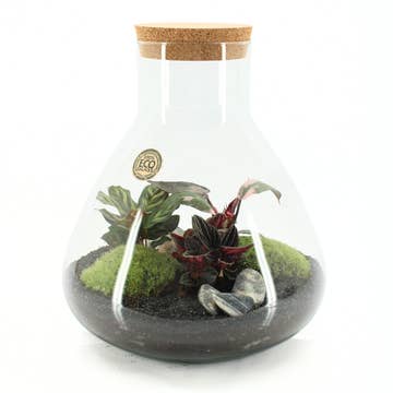 MiniTerra er et selvforsynende økosystem sammensat af en kombination af naturligt sand, dansk kuglemos og selaginella som centrum. Måler 7 x 3 cm. Vægt ca. 35 g. PLEJE LYS: Økosystemer bør modtage så meget indirekte lys som muligt. Undgå direkte udsættelse for solen, som opvarmer produktet for meget og kan brænde planter. Vi anbefaler at placere terrariet i et godt oplyst rum eller i nærheden af et vindue, men altid undgå direkte lys. VAND: Hvert økosystem har sin egen vandcyklus, som genbruges på ubestemt tid, med fugt, der går tabt lidt efter lidt gennem korken, så vi anbefaler en let vanding på ca. 5 ml en gang om måneden, selvom det tager cirka 4 måneder for økosystemer at tørre ud, hvis de forsømmes, så rolig og bare nyd dit mini-økosystem.