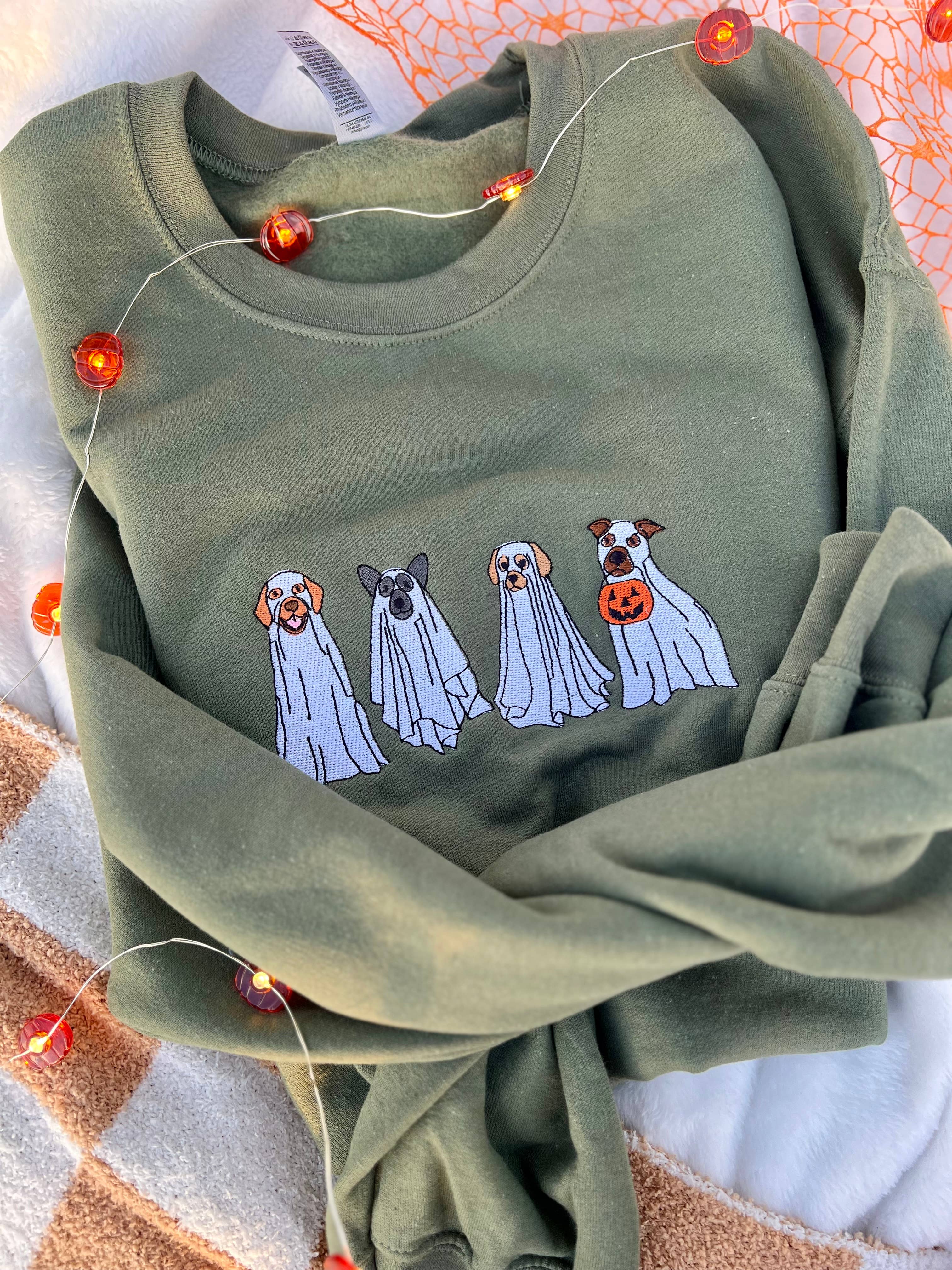 Uhyggelig Hund Halloween Crewneck Pullover Militærgrøn