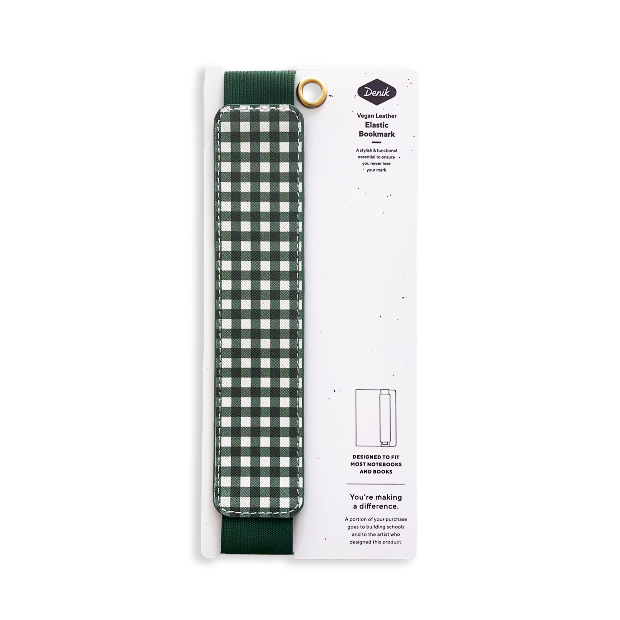 Grøn Gingham - Vegansk læder elastisk bogmærke