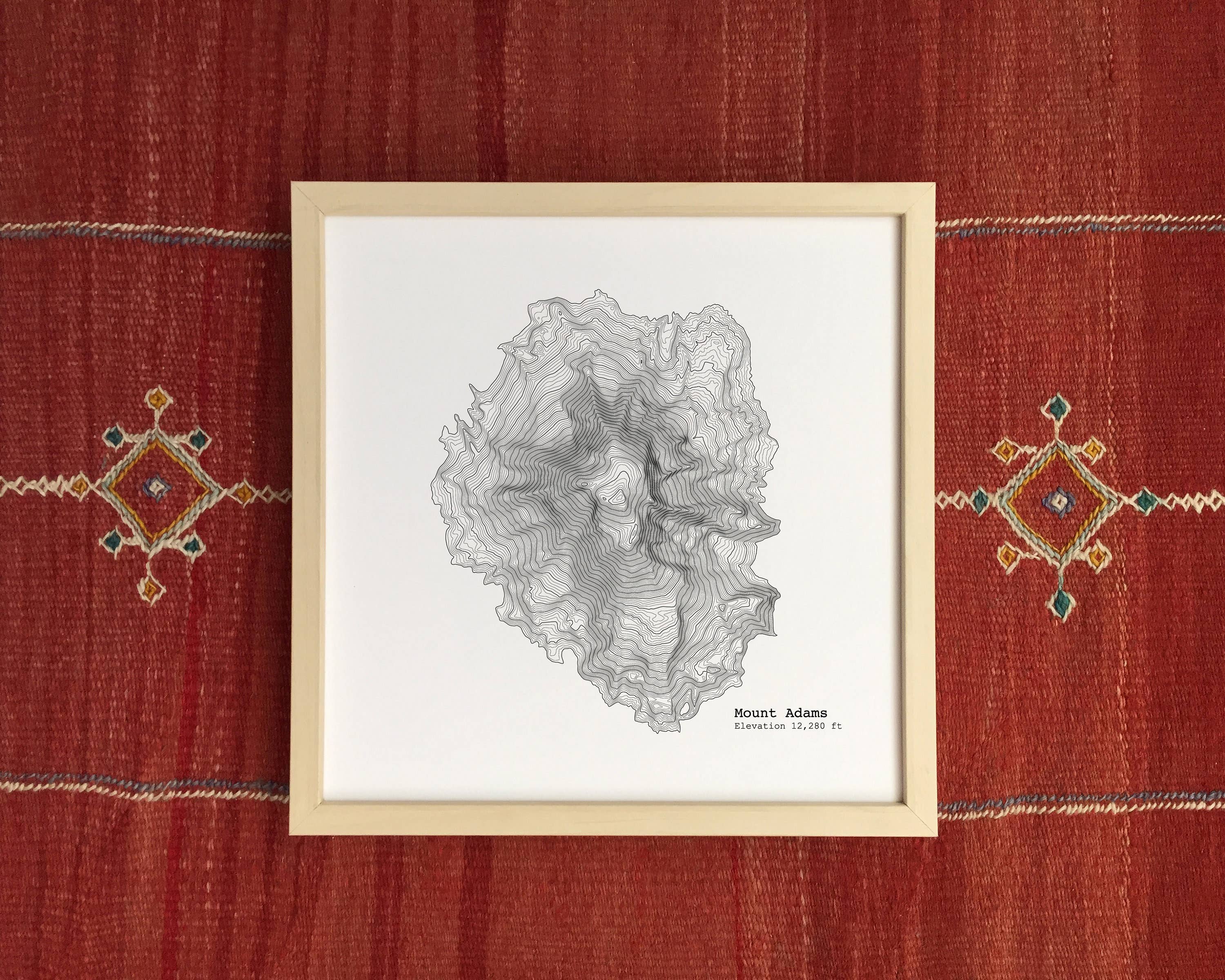 Topografisk print af dit yndlingsbjerg. Trykt i USA med arkivkvalitetspapir og blæk. Print leveres i en klar ærme med en bagside bord.