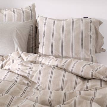 Linned pudebetræk med natural ticking-striber