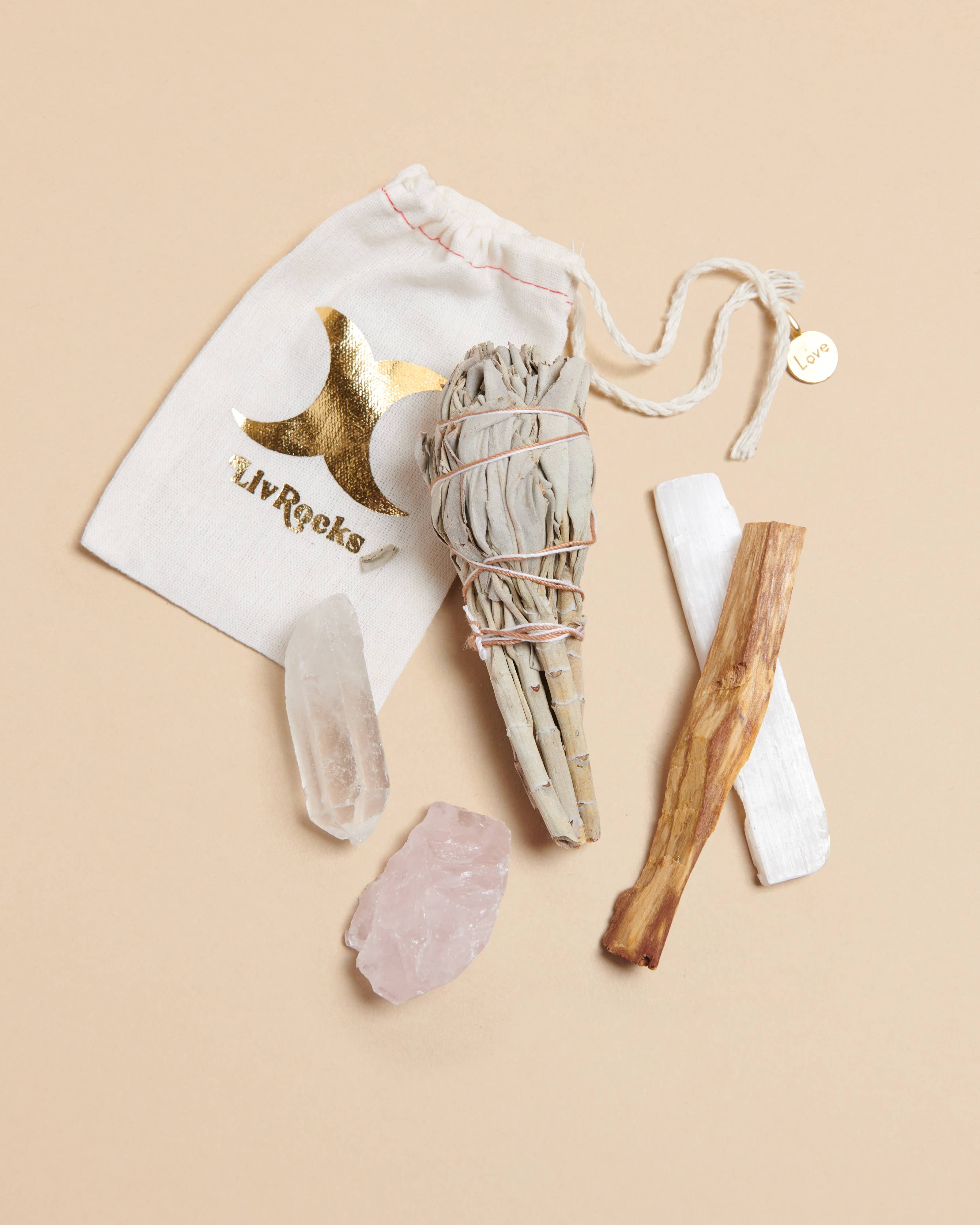 Harmony Clearing Sage Røg og Krystalbundter Vilde blomster og California White Sage Bundle Sages + Smudges af Liv Rocks Harmoni - hvid salvie + blomster + selenit Fred - Salvie + Lavendel + Palo Santo Kærlighed - Salvie + Roser + Palo Santo + Selenit Rydning - Selenit + Krystalpunkt + Palo Santo Overflod - Selenittårn + Krystalpunkt + Palo Santo 🌿 Liv Rocks Sage dyrkes bæredygtigt på privat jord og indsamles meget omhyggeligt for at bevare disse hellige planter. ✨ Slip af med negativ energi, neutraliser et rum til meditation eller tarotsession, eller fjern dårlige vibber i dit hjem med vores smukke salvieprodukter Bemærk, at stof/bånd kan have en anden farve eller print end vist på fotos.