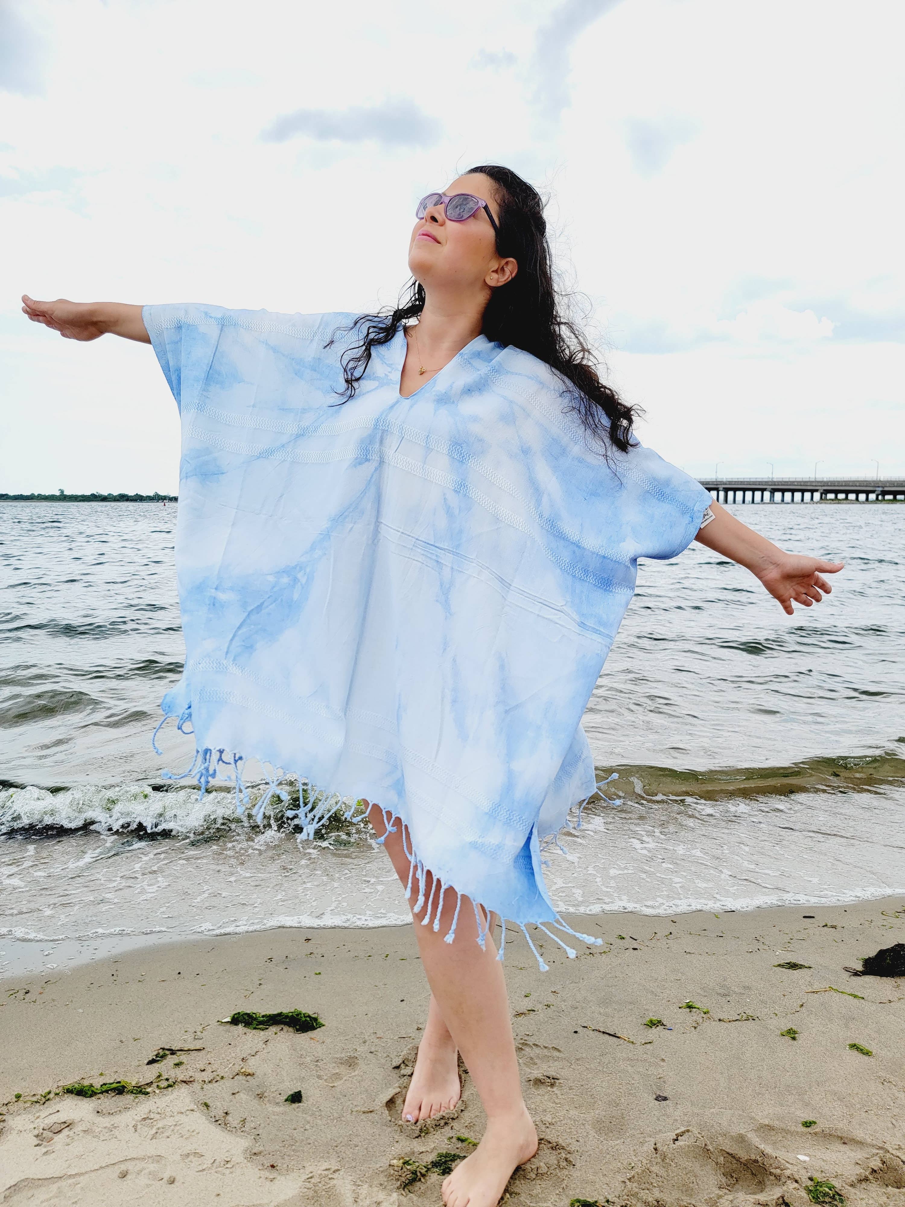 One size FITS ALL! Bedst sælgende vare. Håndlavet kjole top, Du kan bære som en top afslappet eller det kan være dække op. Det har slids på siderne og kvast ender giver autentisk udseende. To forskellige striber gør det highend.