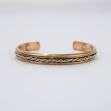 Kobberarmbånd er blevet brugt til deres helbredende kræfter i tusinder af år gennem det antikke Grækenland og det gamle Egypten. Dette skyldes deres medicinske egenskaber, da kobberarmbånd har vist sig at have helbredende fordele ved en række forskellige tilstande, herunder gigt, fibromyalgi, hjerte-kar-sygdomme, infektioner og svækkede immunsystemfunktioner. Magnetiske kobberarmbånd er en overkommelig, ikke-invasiv løsning til forbedret generel sundhed. Dette armbånd er lavet af kobber med små magneter fastgjort til begge ender. Siden oldtiden er kobber og magneter blevet betragtet som nyttige til lindring af gigt og reumatiske symptomer. Takket være dets naturlige helbredende kræfter kan du bruge kobber til at overføre egenskaberne af stenene omkring dig, og kobber aktiverer og åbner også chakraerne. Kobber skaber en harmonisk forbindelse mellem den fysiske og astrale krop og kan bruges til at rense og afbalancere din energistrøm. Bemærk: Andre metaller bruges til at skabe designet.
