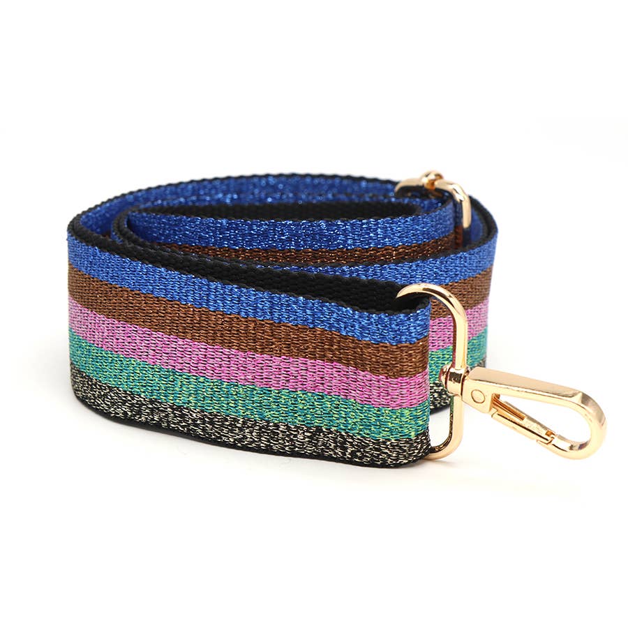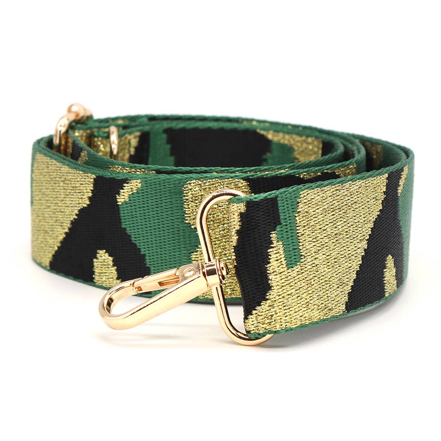 Salviegrøn, taupe og blommefarvet geometrisk vævet udskiftelig taskerem med gyldne clips