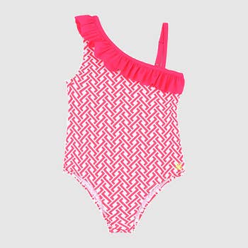 * Hold din strandbabe på forkant med trendene med denne dyrebare badedragt i ét stykke i ét stykke med levende og vilde geometriske mønstre. Du finder ikke disse smarte designs i butikkerne. Dyk ned i svømmeundervisning, stænkpuder og eventyr til vandlandet med de sødeste designs. * Perfekt til forår, sommer og vandspil året rundt * Det bløde stof beskytter hendes følsomme hud og gør det ideelt til svømmeundervisning, fødselsdagsfester, strandsjov eller lange dage ved poolen! * Badedragt i ét stykke med asymmetriske flæsesskuldre og geometrisk tryk * Inkluderer geometriske udskrivningsindstillinger * Badedragt fås i størrelser til småbørn og piger