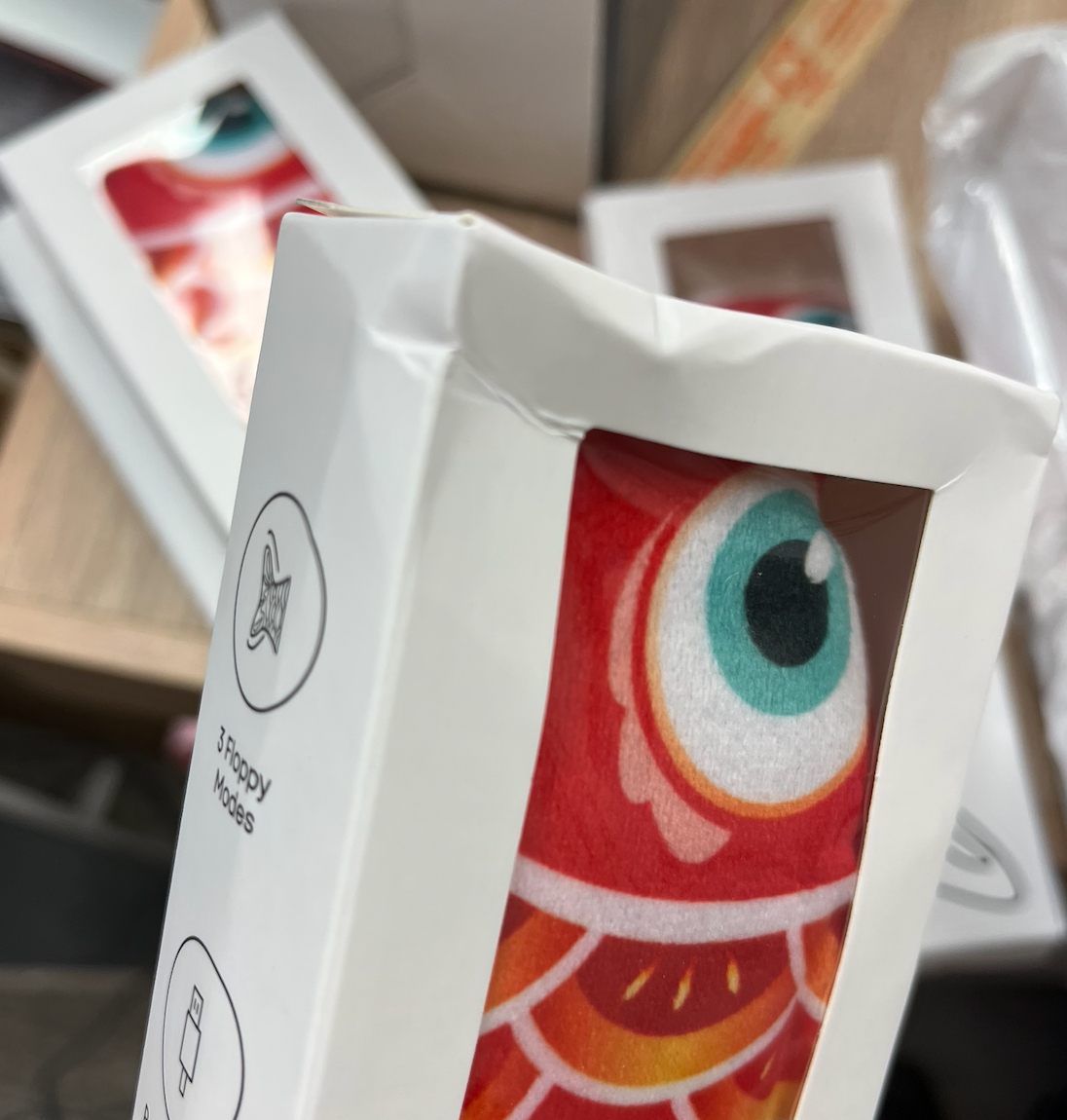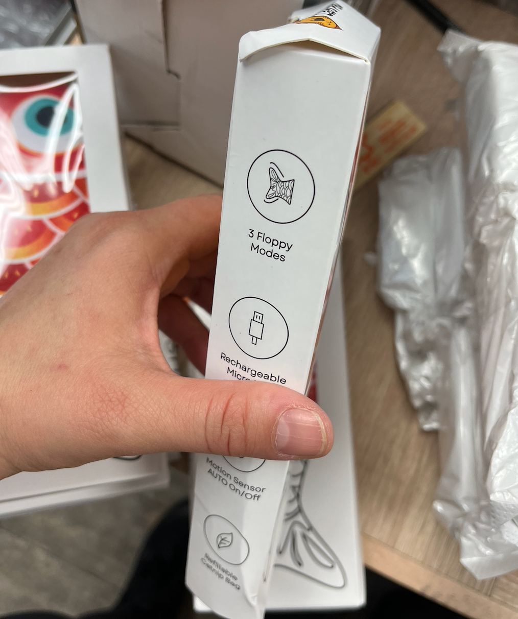 Mine kunder elsker disse legetøj af høj kvalitet. Den lille floppy fisk var tilsyneladende noget, som mange katteejere ledte efter.