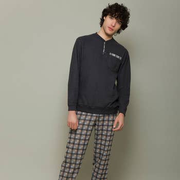 Det var her det hele startede, Henry Pajama Set, designet til at blive båret i eller uden for soveværelset. Den skræddersyede pasform betyder, at skjorten nemt fungerer som dagtøj, og det superbløde bomuldsstof sikrer komfort hele dagen/hele natten. Bukserne har side- og baglommer med manchetdetaljer.