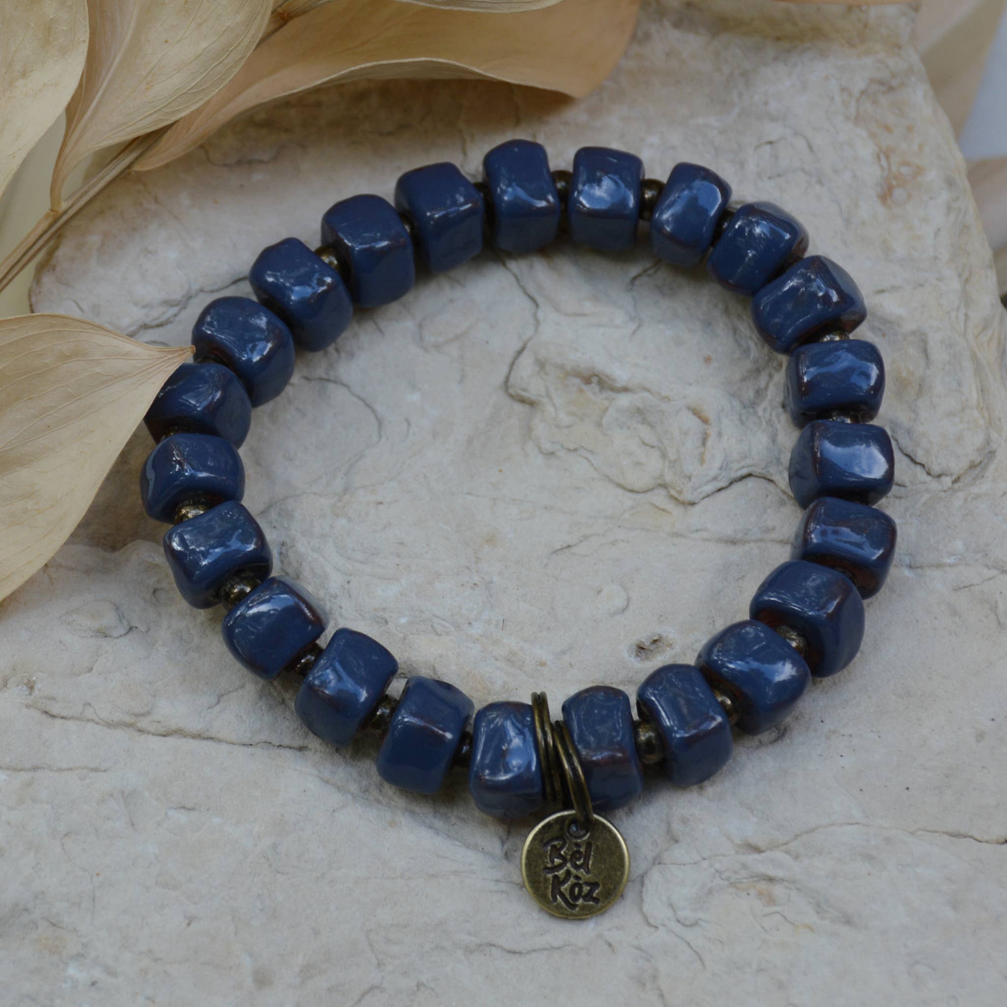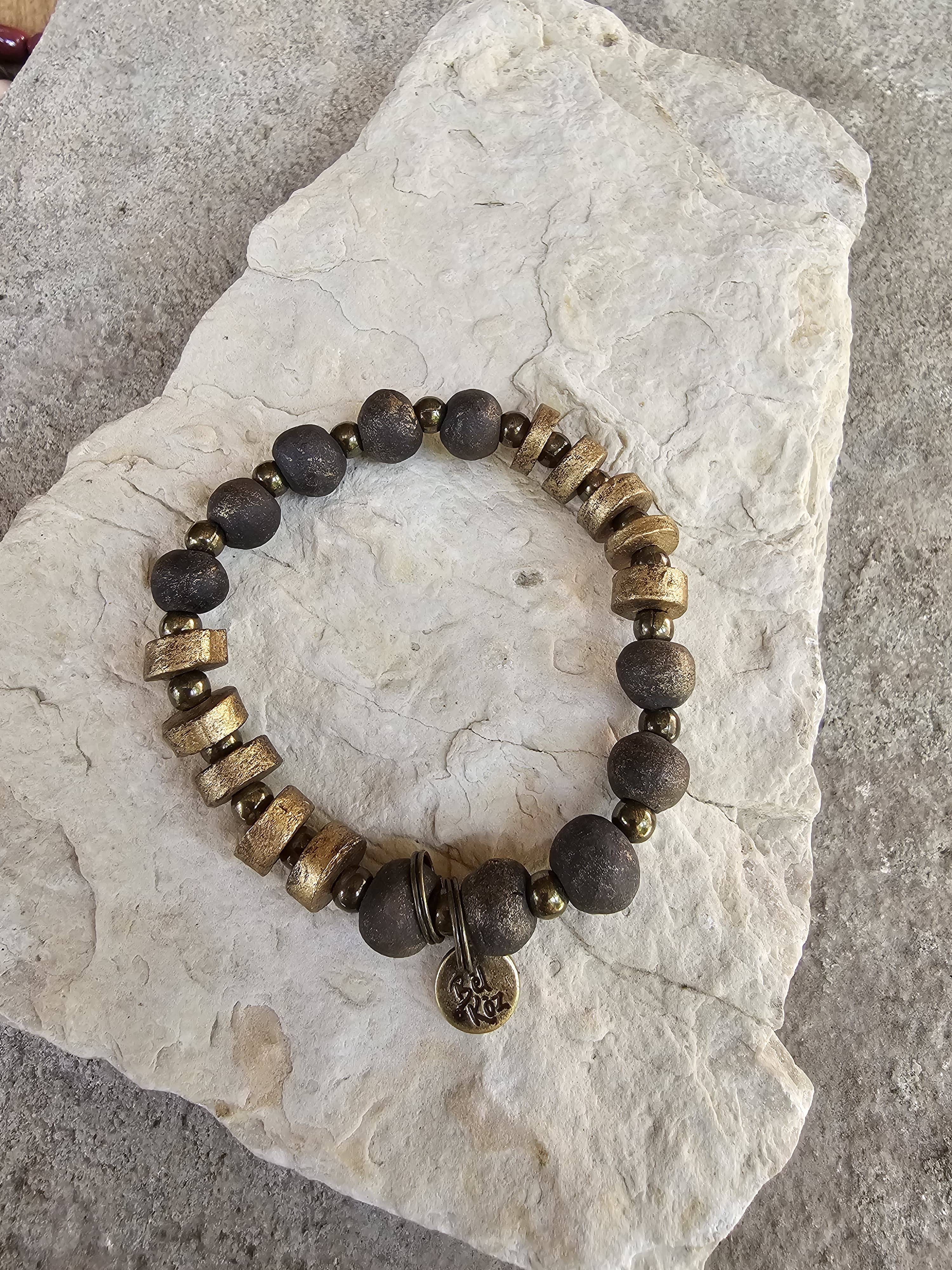 Rå ler hentet i den centrale plateauregion i Haiti forarbejdes + individuelt håndrulles af talentfulde håndværkere i Port-au-Prince, Haiti - omdannet til smukke keramiske smykker. * Håndlavet i Haiti * Glaserede, ovnfyrede lerperler på elastik * Cirka 7“ diameter * Antikke messingafstandsperler * Inspirerende antik messing håndstemplet charme {25mm cirkel ELLER 12mm sekskant} Enkelt armbåndsliste || nogle fotos vist i stak Cashmere