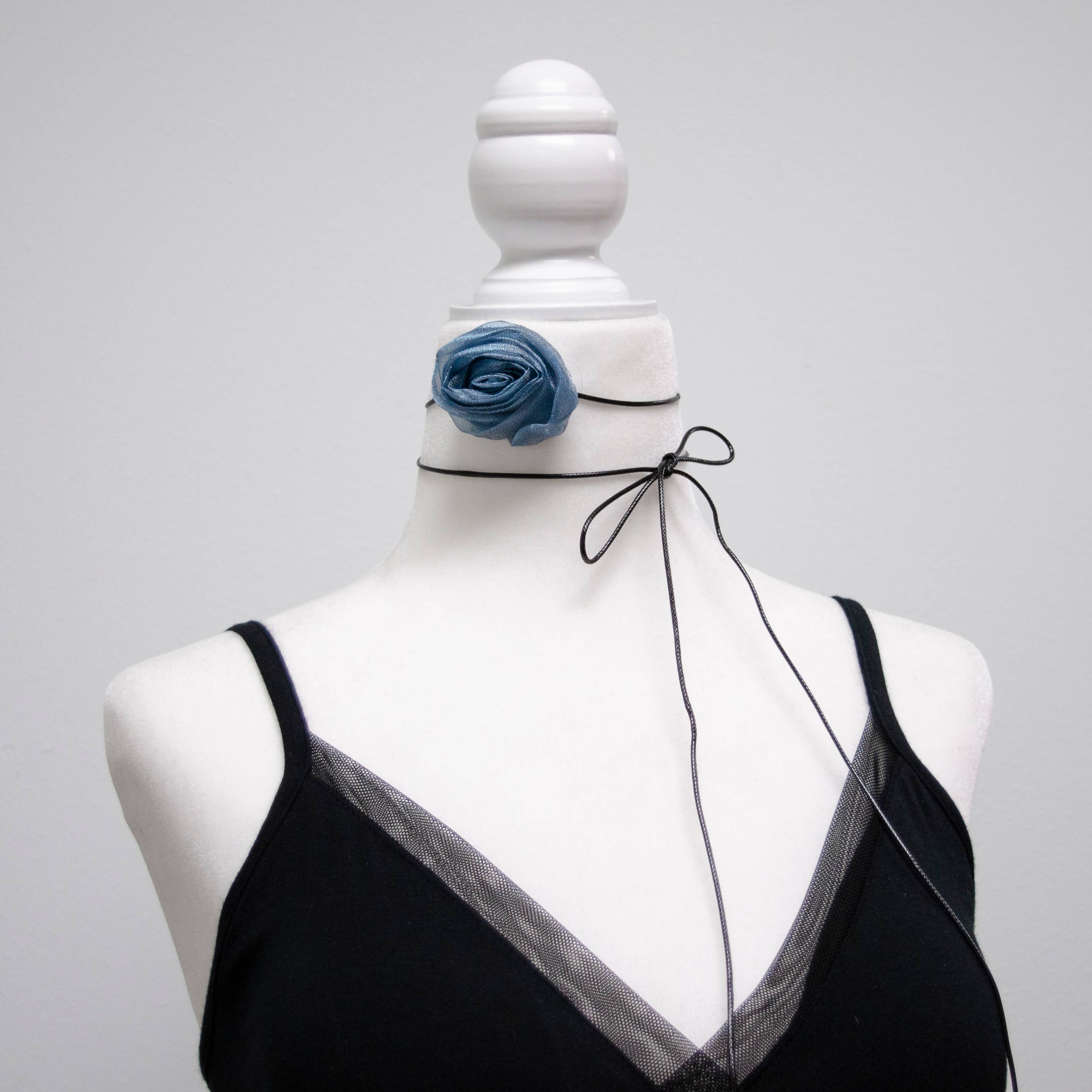 Satin blomst rose choker halskæde, elegant blomst halskæde