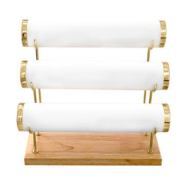 Træstander til disken til øreringe. Kan holde 30 forskellige typer øreringe, med op til 4 øreringe pr. pind, hvilket giver plads til i alt 120 øreringe på display. Mål: 42,7 cm bred x 40,6 cm høj (55,9 cm med tavleskilt) x 20,3 cm dyb. Fås i flere farver.