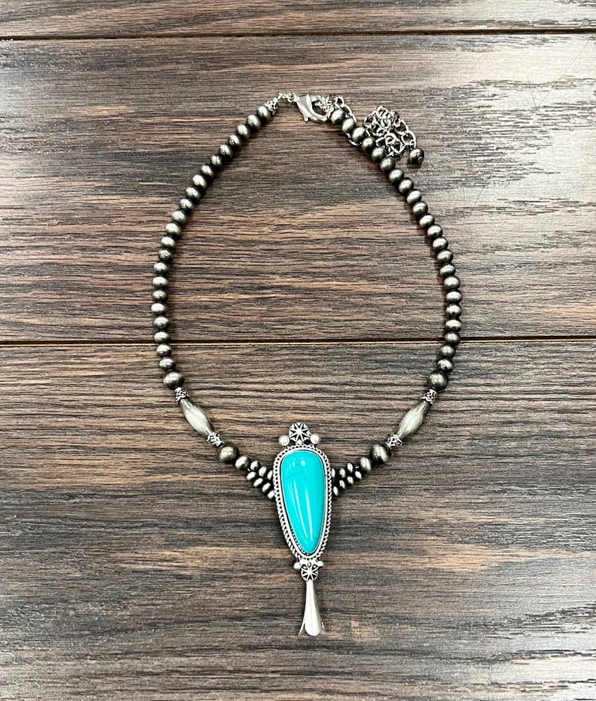 739026, Håndlavet 15" 4mm Turkis Sløjfe Halskæde