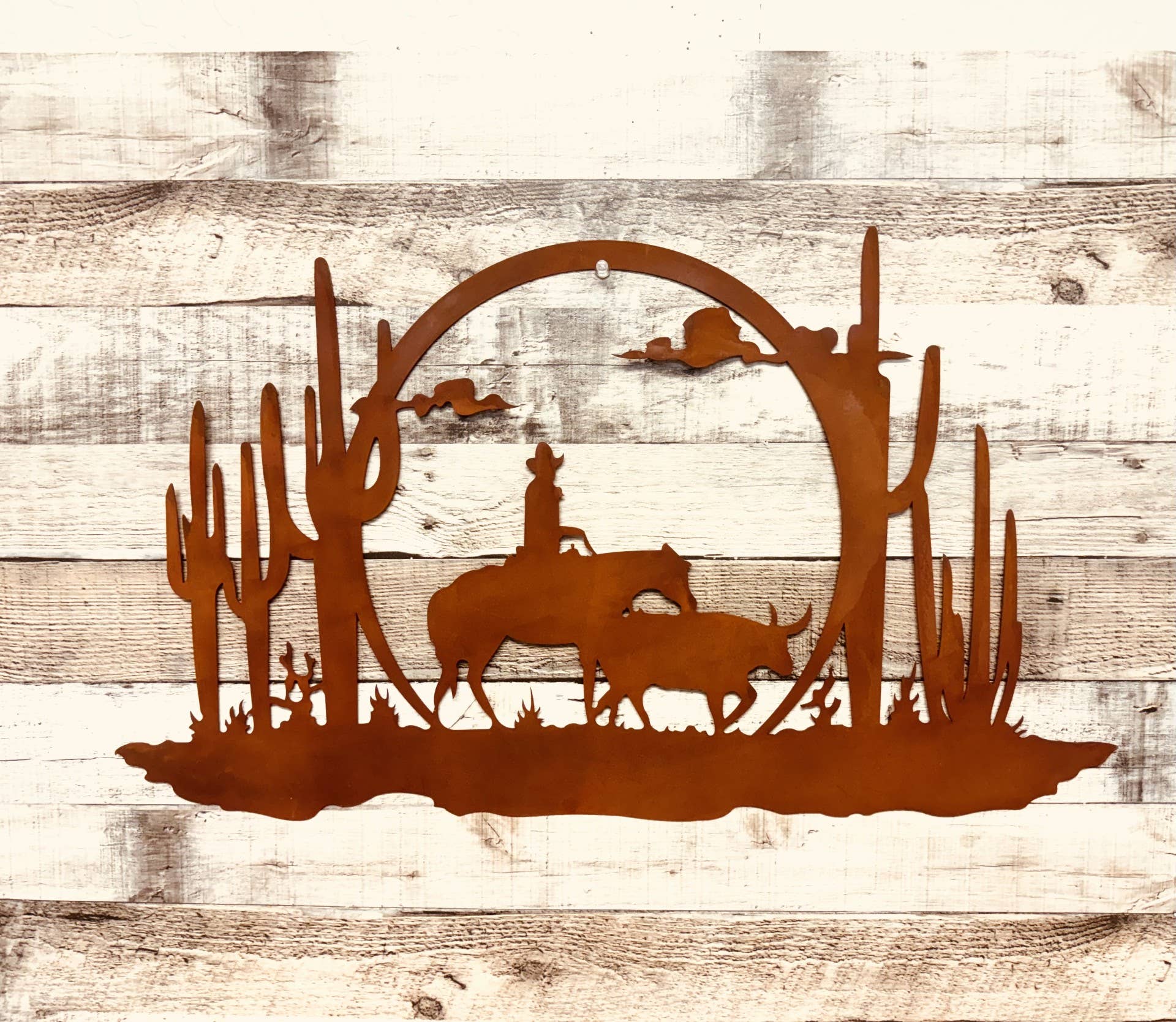 Cowboy Ørken Rustik Metal 24 Tommer Western Vægkunst