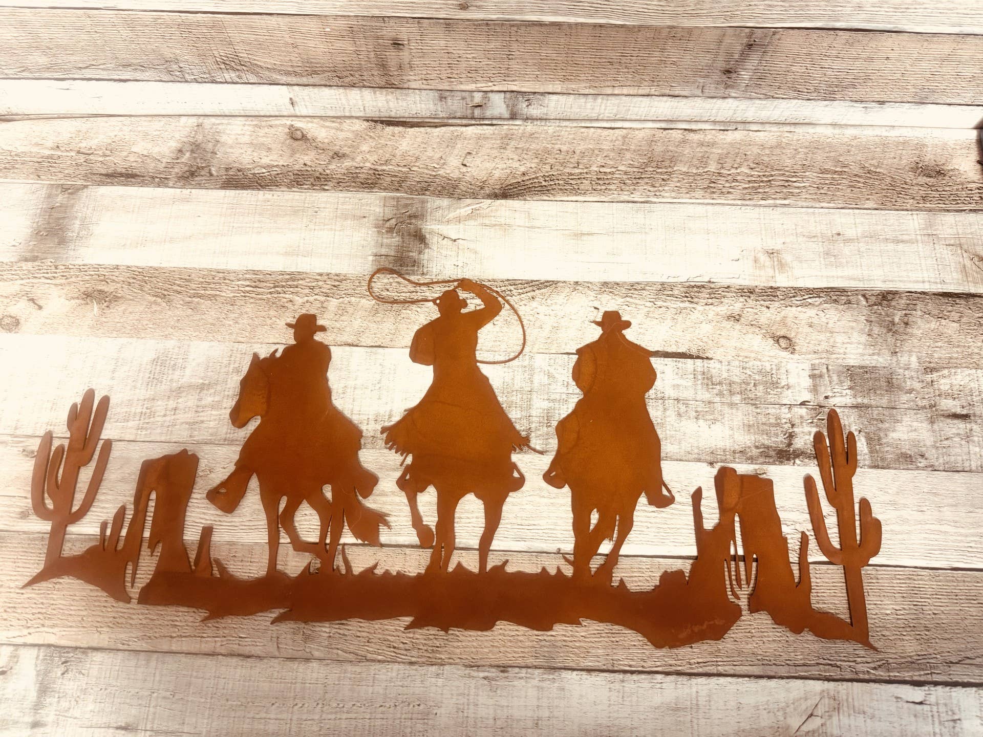 Cowboy Ørken Rustik Metal 24 Tommer Western Vægkunst 24 x 12