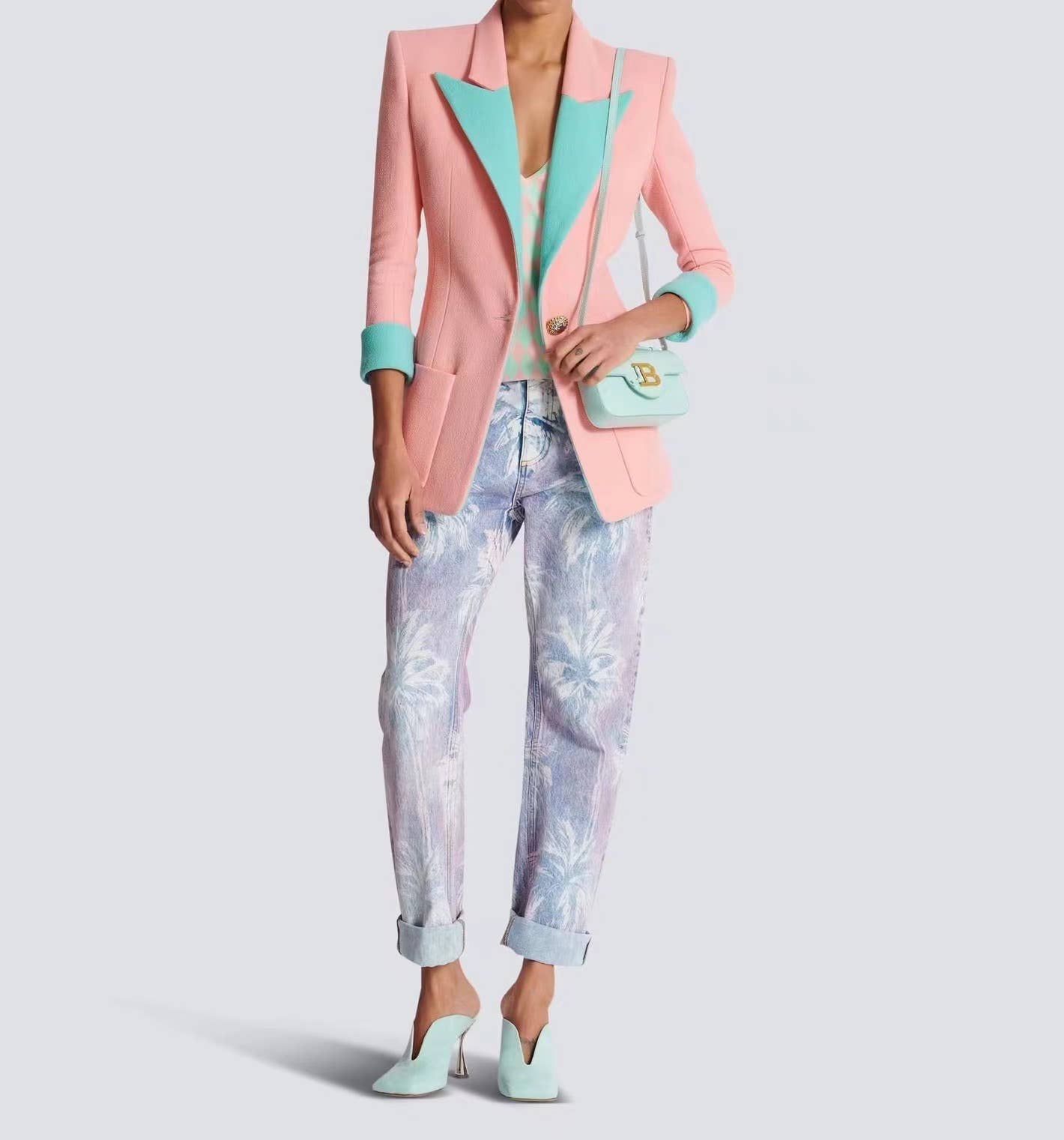Dyk ned i elegancen i denne enkeltbrystede jakke, der er en perfekt blanding af stil og komfort til den modefremadrettede. Jakkens bløde lyserøde nuance suppleres af slående kontrastfarvesyninger langs kanterne, der tilføjer en personlighed til det klassiske design. Med sine trekvartærmer og slanke silhuet er dette stykke et ideelt valg for dem, der ønsker at gøre sig gældende i deres professionelle garderobe. Udformet af materialer af høj kvalitet lover det holdbarhed og nem bevægelse.