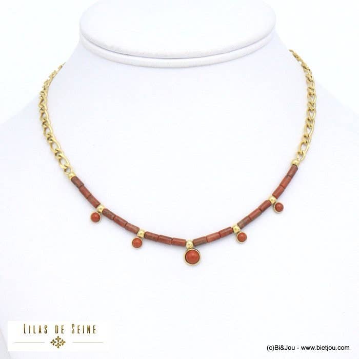 Elastisk armbånd i beach surfer-stil med farvede naturlige perlemorringe og rustfrit stål 0222133. Armbåndet er fleksibelt og passer til alle håndled. Dette elegante armbånd indeholder ikke nikkel, bly eller cadmium og er allergivenligt i overensstemmelse med europæisk lovgivning.