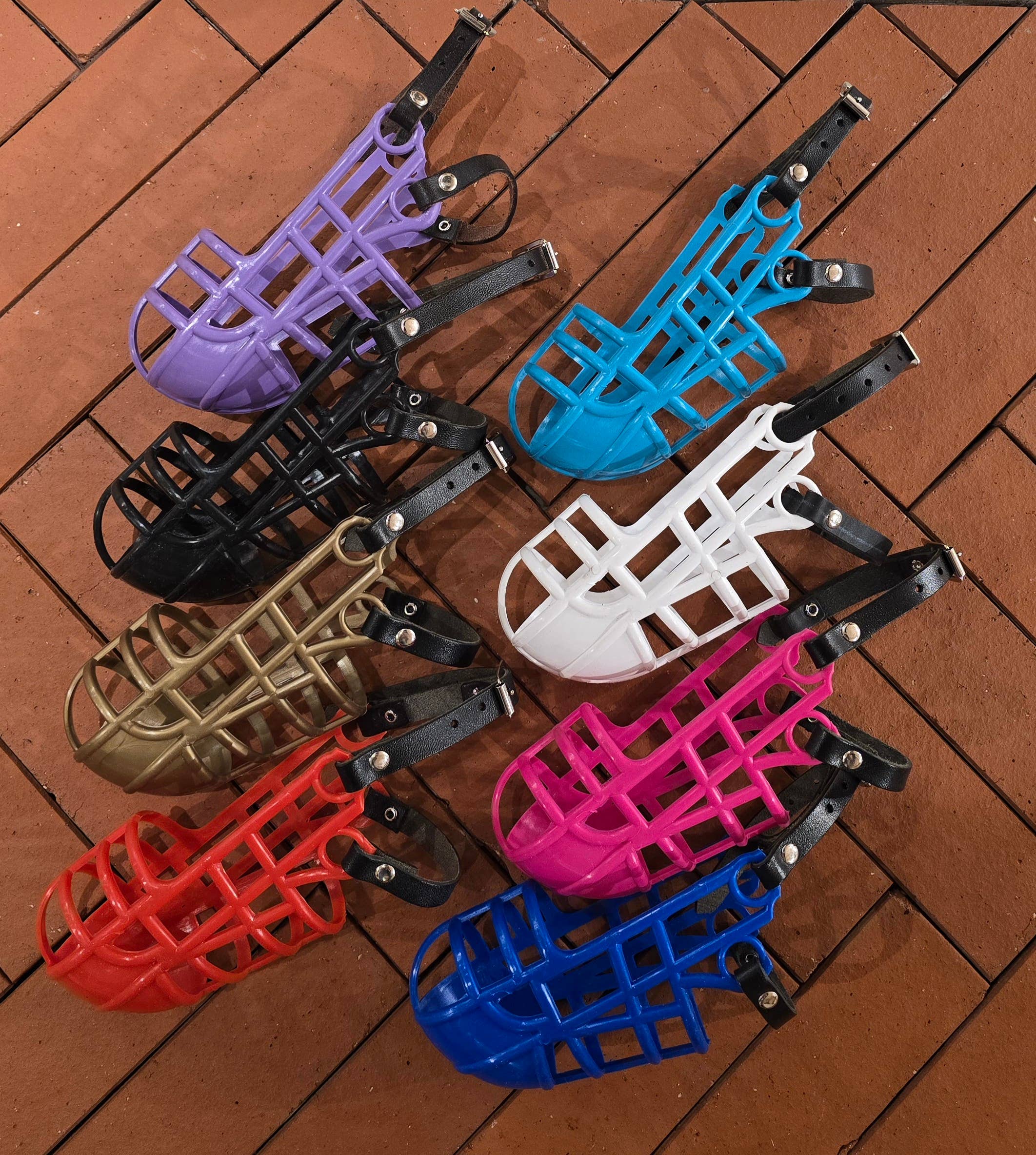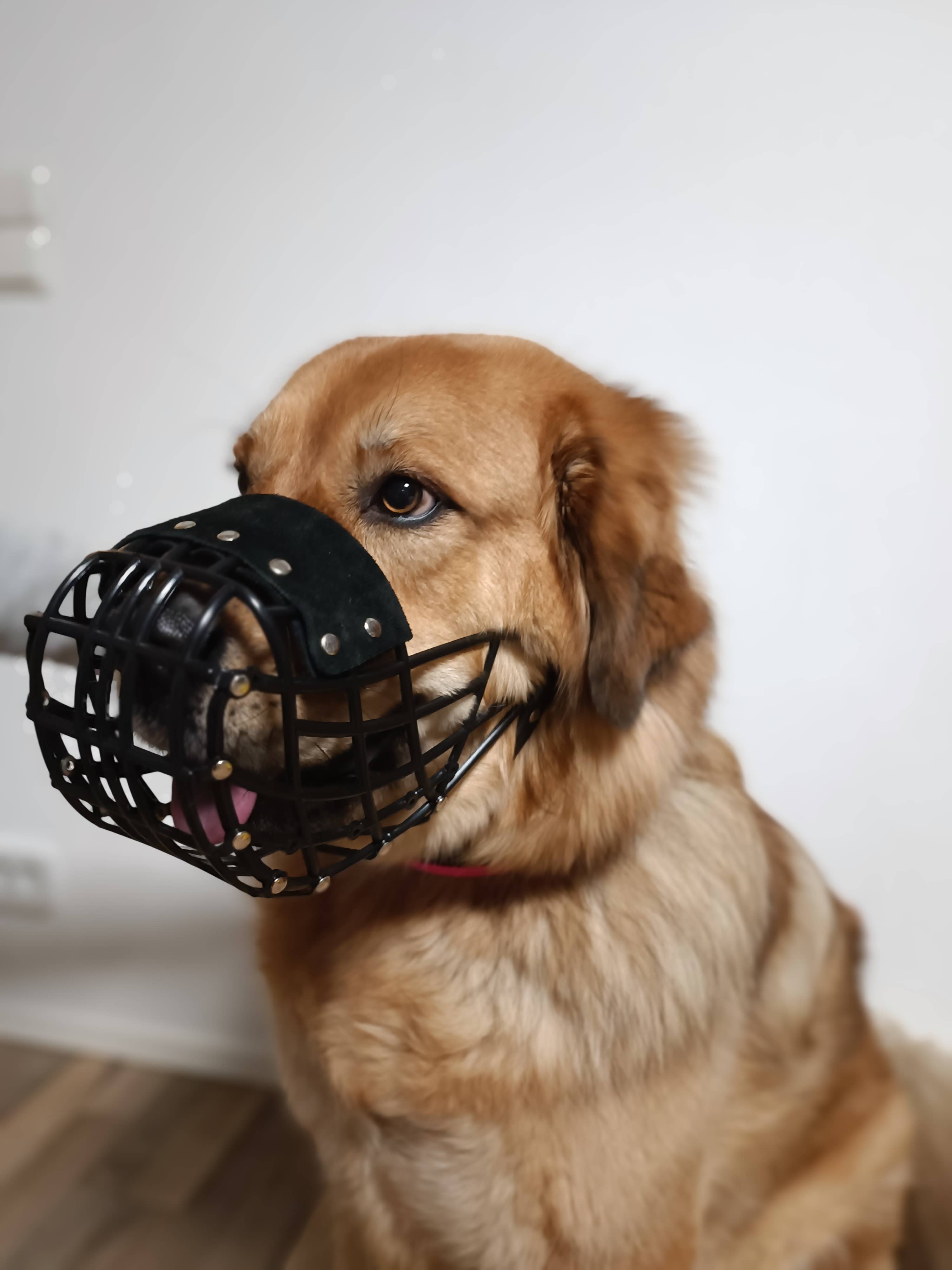 Meget letvægtsmundkurv, som gør det muligt for hunden at drikke vand. Husk altid, at der skal være plads til ca. en fingerbredde mellem mundkurven og hundens næse. Nogle ejere bruger for eksempel et par lag af den elastiske coban-bindage rundt om mundkurven for at beskytte næseryggen. Denne model er især populær blandt mindre hunde end greyhound. Vores letvægtsmundkurv fås i to længder: standard og standard plus. Standard plus er 2 cm længere end standardmodellen. På det andet billede kan man tydeligt se, at fiskeri er forbudt ;).