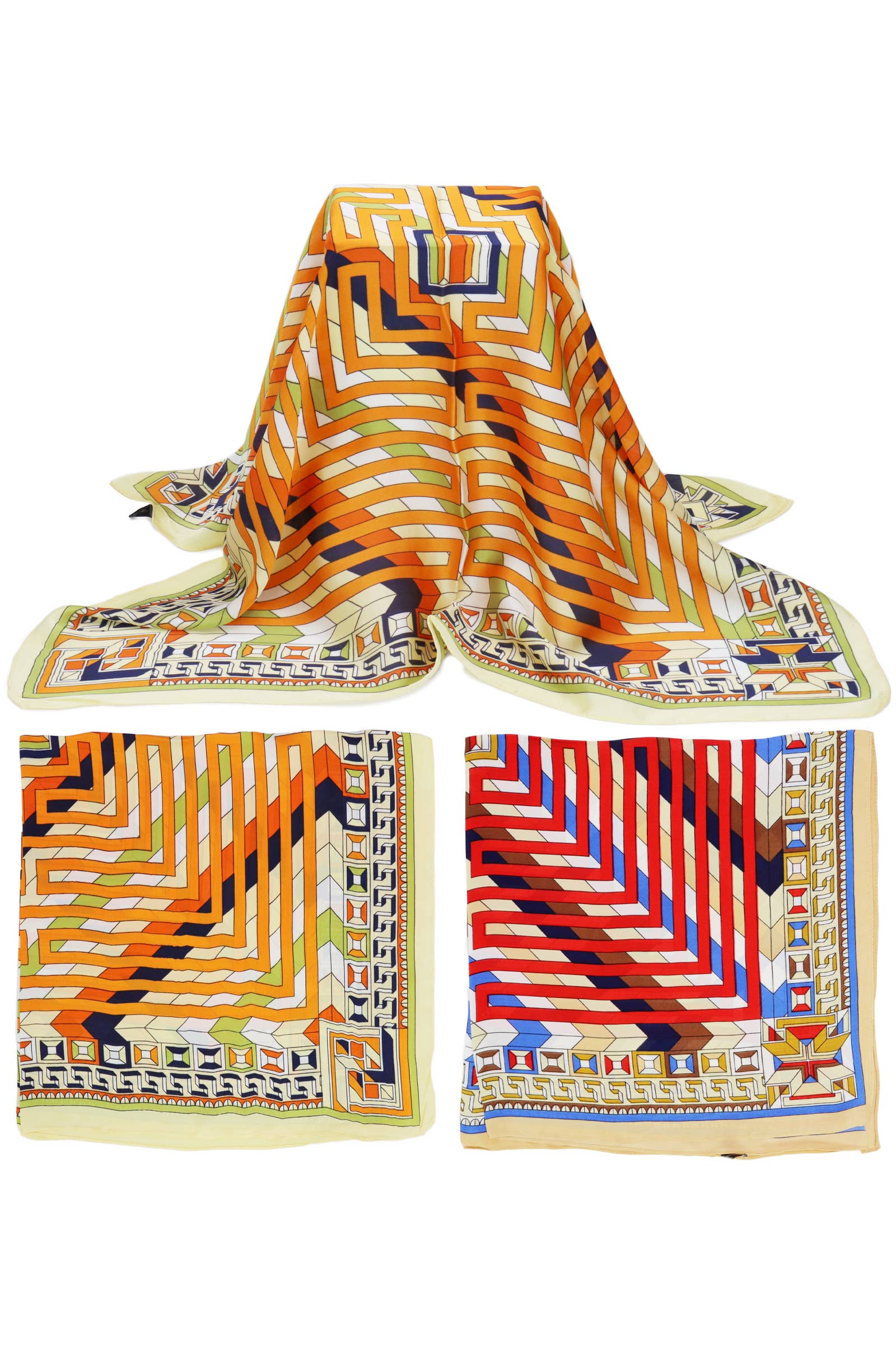 Poppy Floral Barok Filigran Print Farve Kontureret Falsk Silke Polyester Firkantet Tørklæde Dimensioner: 36" * 36" (91,4 * 91,4 cm) Assorterede Farver (12 - 3 Enheder Per Farve)