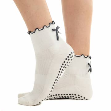 Blød, sød og klar til at svede. Ruffle Bow Grip Sock bringer balletcore-energi til hver bevægelse—uanset om du flyder gennem Pilates, pulserer i barre eller ryster på Lagree-maskinen. Med en delikat off-white nuance, flirtende flæsekant og den yndigste lille sløjfe beviser denne sok, at funktionelt kan være fantastisk. Off-white med flæse + sløjfe detalje for maksimal sødme️ Designet til Pilates, barre og Lagree Skridsikker greb + polstret støtte = skønhed og ydeevne Størrelsesguide: S/M: Passer til US Kvinder 5.5–7 M/L: Passer til US Kvinder 7.5+ Yndig udenpå. Seriøs på sveden. Lad os komme i gang—med stil.