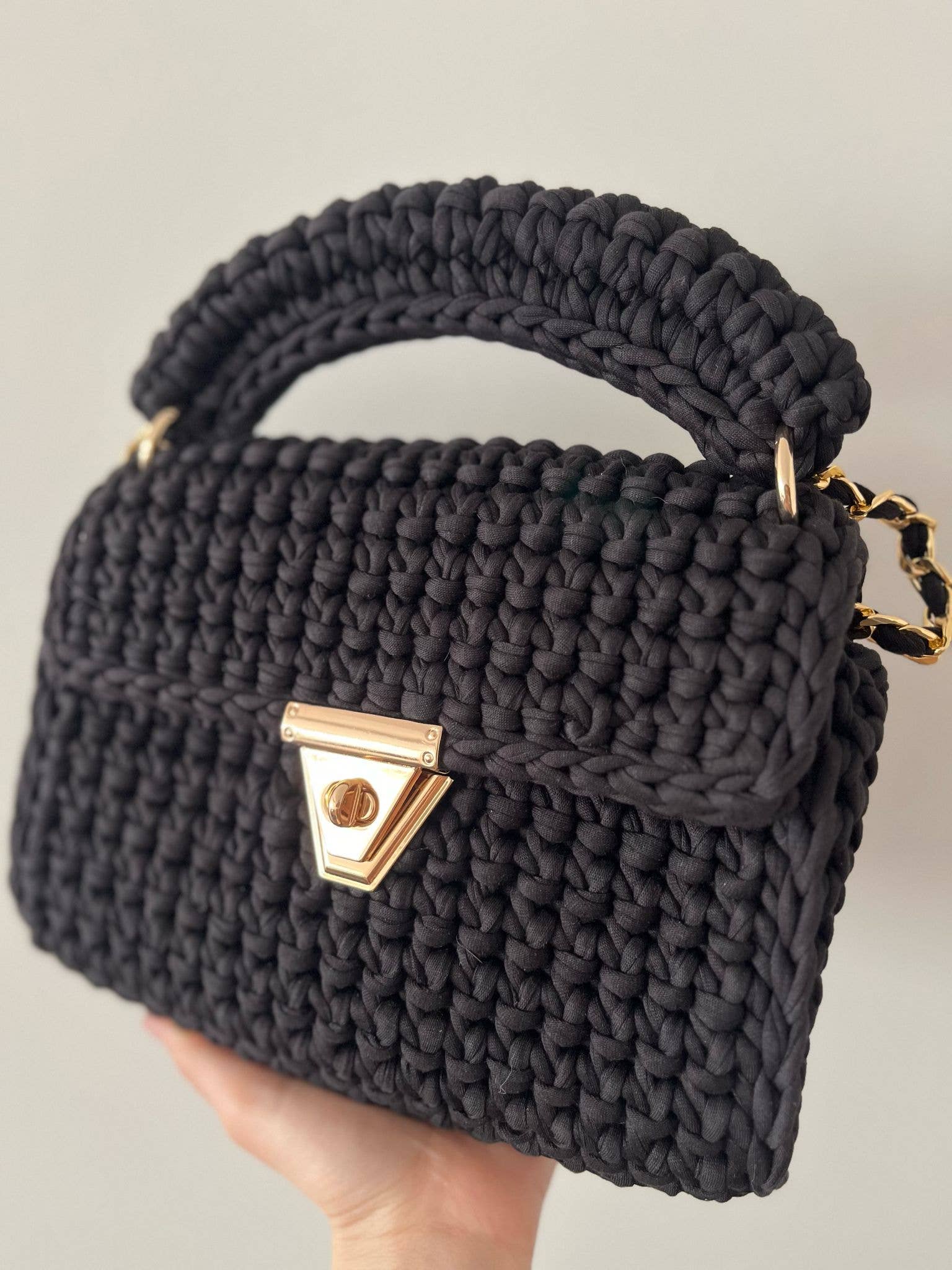 UNIK HÆKLET TASKE: 100% håndlavet taske, der passer til mange forskellige stilarter, kan rumme mange genstande, telefoner, makeup, solbriller, punge. (Størrelse: 9x8x4 tommer - 23 (L) x 20 (H) x 10 (B) cm) Den vil fuldende din elegance med dag- og aftentøj. AFTENCLUTCH HÅNDTASKE: Når du bærer vores hæklede taske på stranden, til bryllup, fest eller på gaden, vil dens sofistikerede design og fantastiske trendy look tiltrække mange menneskers opmærksomhed. Den viser din fashionable og elegante smag. NATURLIG HÅNDLAVET PUNG: Håndlavet hæklet taske lavet af premium T-shirt kæmmet garn med bomuld. Fordi den er lavet af bomuld, er vores produkter helt venlige over for miljøet og mennesker. Den har også en metal kæderem og en snoet lås. Da de anvendte tråde er genbrugstråde, kan der være minimale forskelle i farvetonen og størrelsen på capri-tasken på billedet. EGNET TIL ENHVER ANLEDNING: