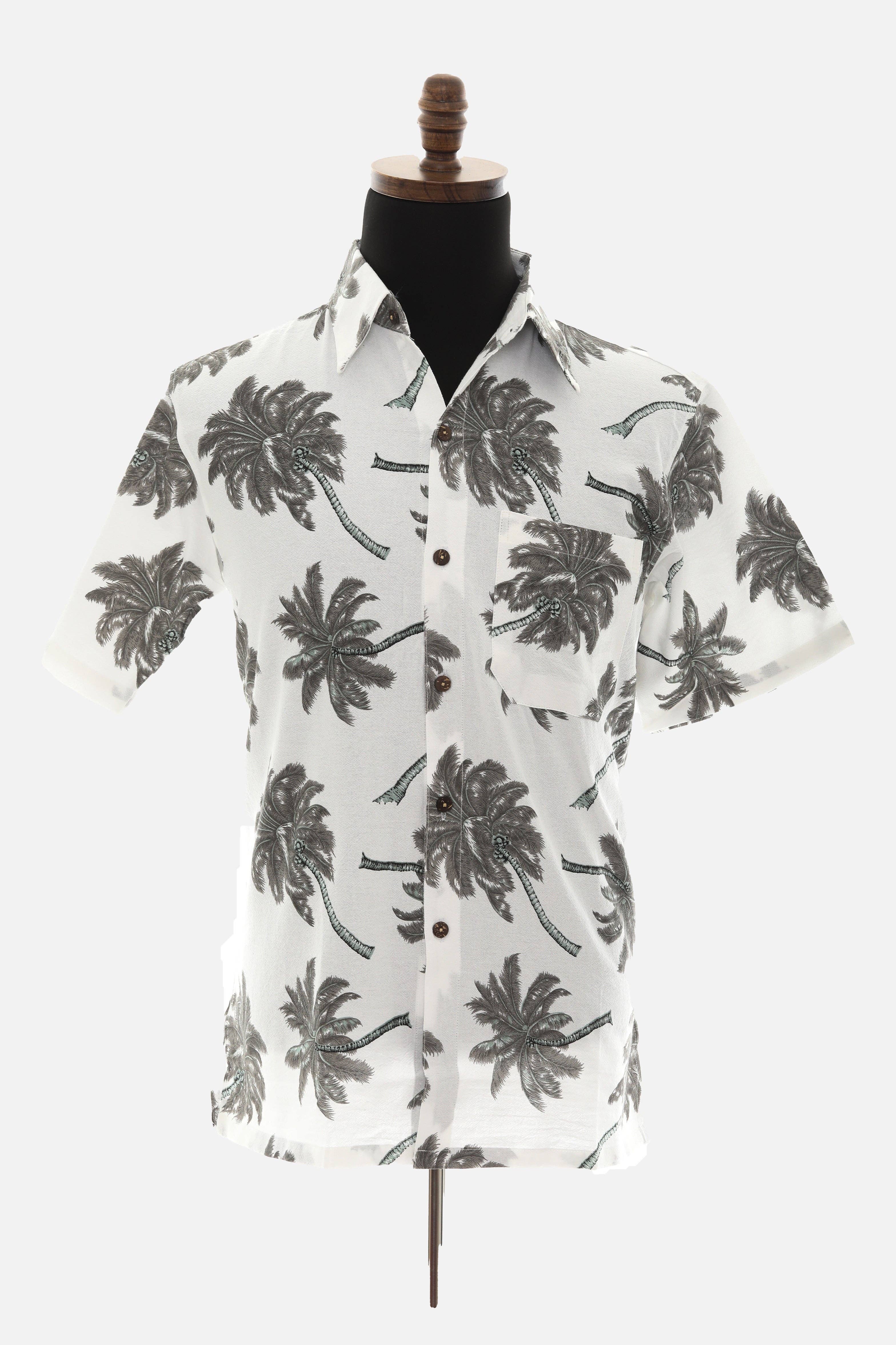 Herreskjorte i fin thailandsk bomuld med palmetræsprint