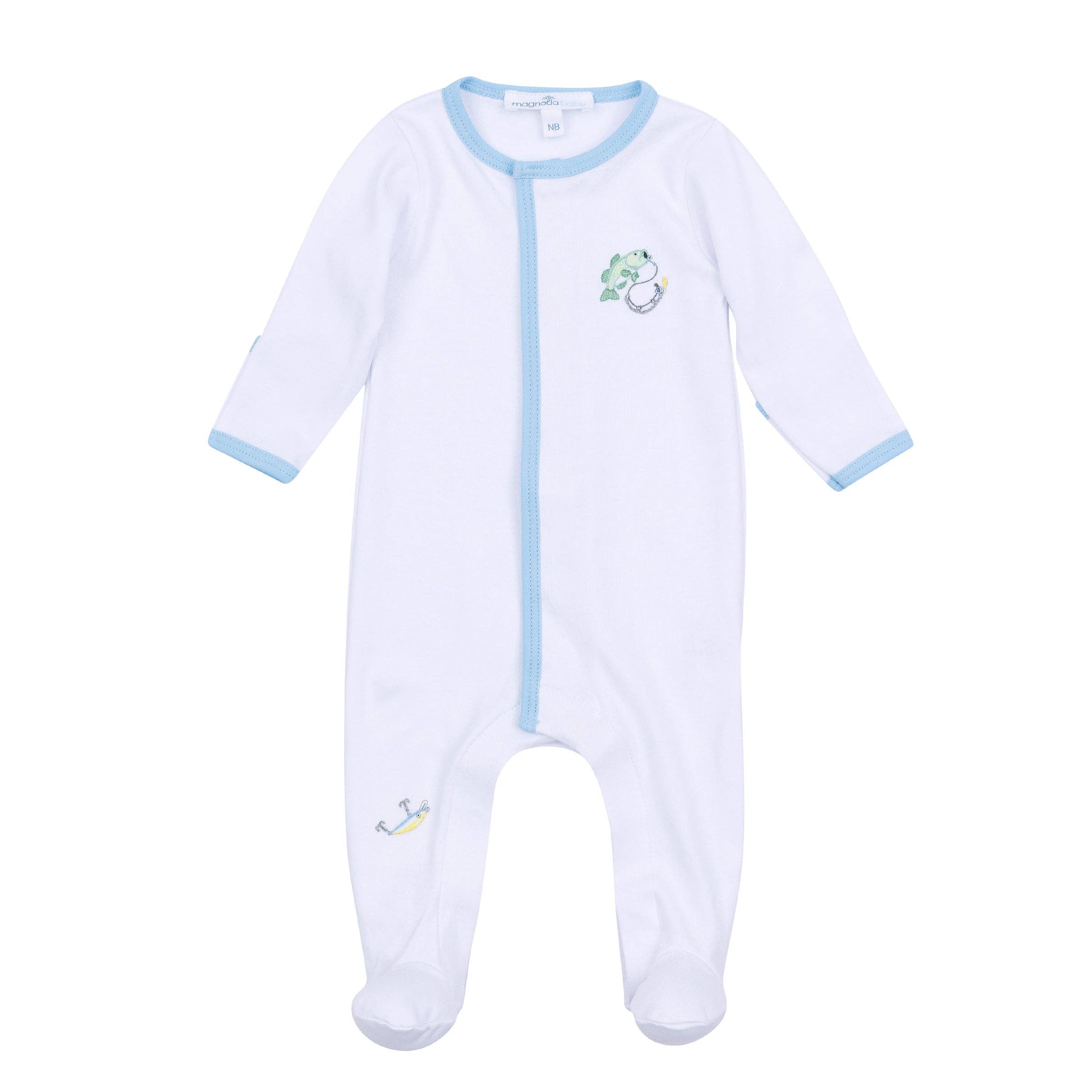 Krog, Line og Sinker Print Boble Forestil dig din lille en plaske rundt i denne yndige boble! Med et sjovt og legende print af fisk og fiskeudstyr fanger dette stykke ånden af en dag ved søen eller havet. Fremstillet af den mest luksuriøse Pima-bomuld, er det utroligt blødt mod babys sarte hud og perfekt til varme dage. Funktioner • Allover Print: Sjovt og legende design med fisk og fiskeudstyr. • 100% Pima Bomuld: Blødeste berøring for babys sarte hud. • Trykknaplukninger: Nemme bleskift uden fuld afklædning. Fordele • Perfekt til Varmt Vejr: Let og åndbar. • Nem Pleje: Maskinvaskbar for din bekvemmelighed. • Mix & Match: Med andre Krog, Line og Sinker stykker. Se din lille udforske verden med stil i denne yndige printboble!