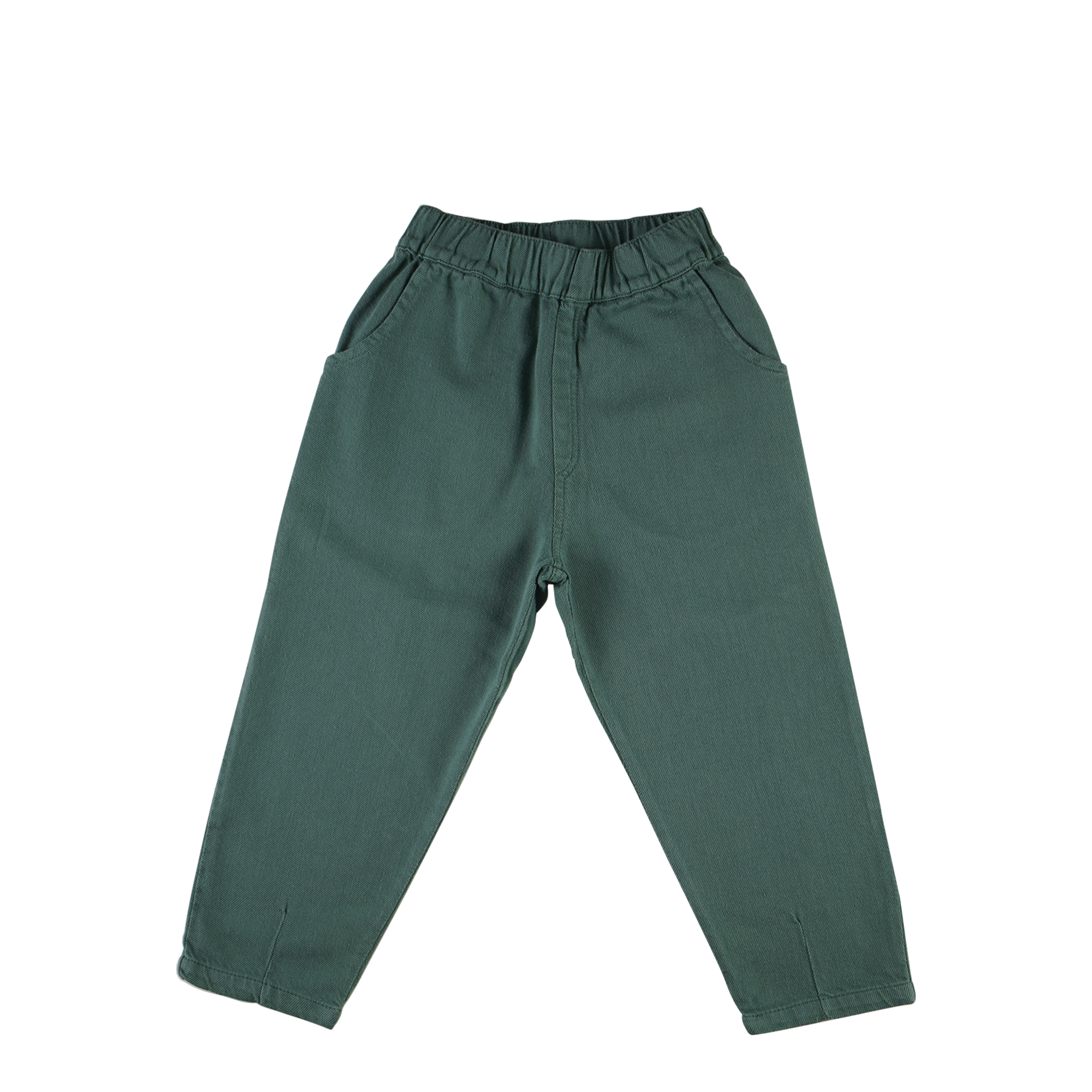 Bukser i joggerstil med lommer og ribdetaljer. Der er en bomuldssnor til justering af taljen. 100% økologisk bomuld (børstet inderside)