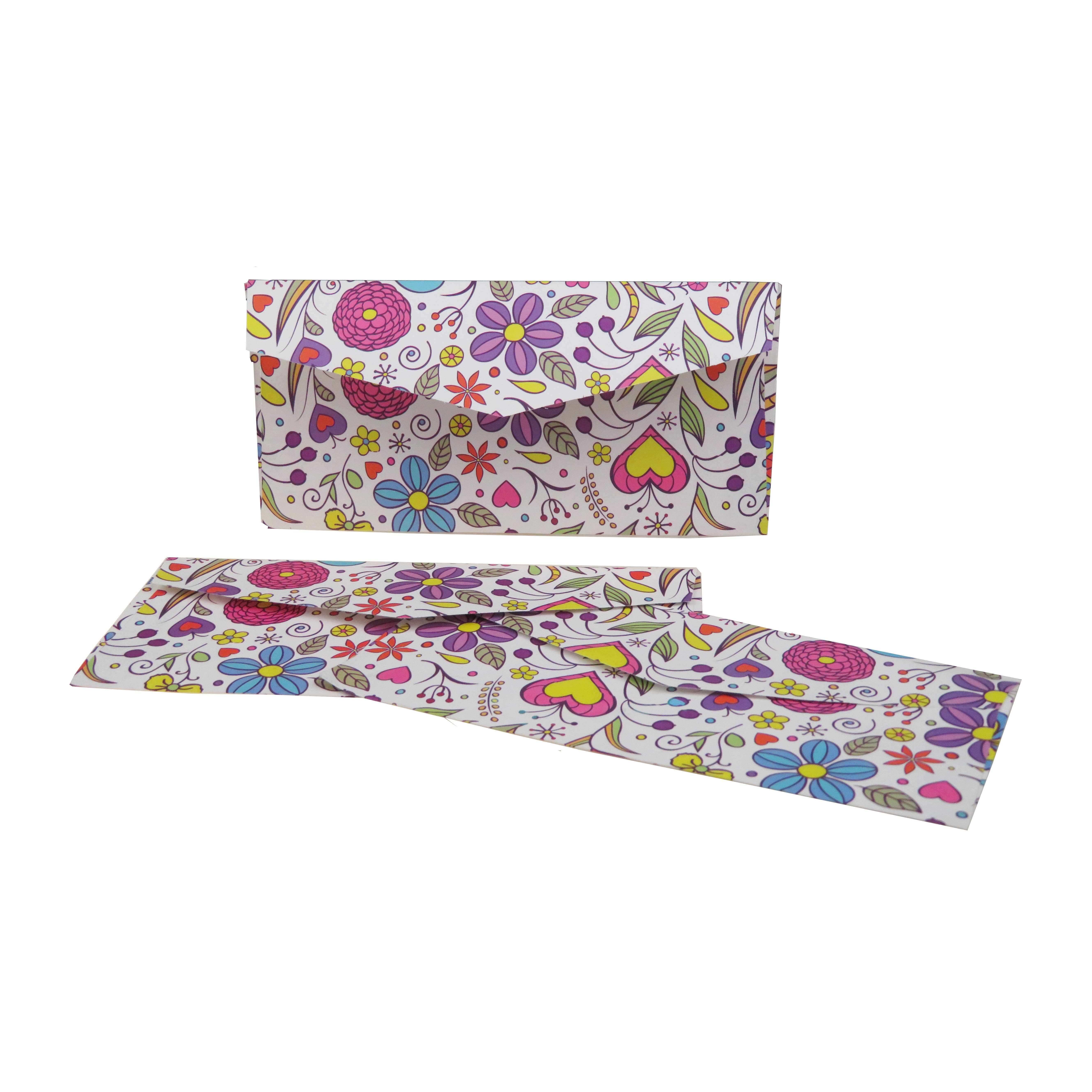 I Poppy-serien består disse tykke, håndlavede papir-konvolutter (lavet i tanken, trykt på ramme) af et mønster med glade valmuer. Målene er 22 x 11 cm, og konvolutterne er ikke selvklæbende. De sælges i pakker af 24 styk. Materiale: Papir lavet i tanken og trykt på ramme. Netvægt: 5 g.