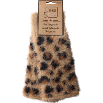 Tan Leopard Fluffy Strikkede Fingerløse Handsker GL290
