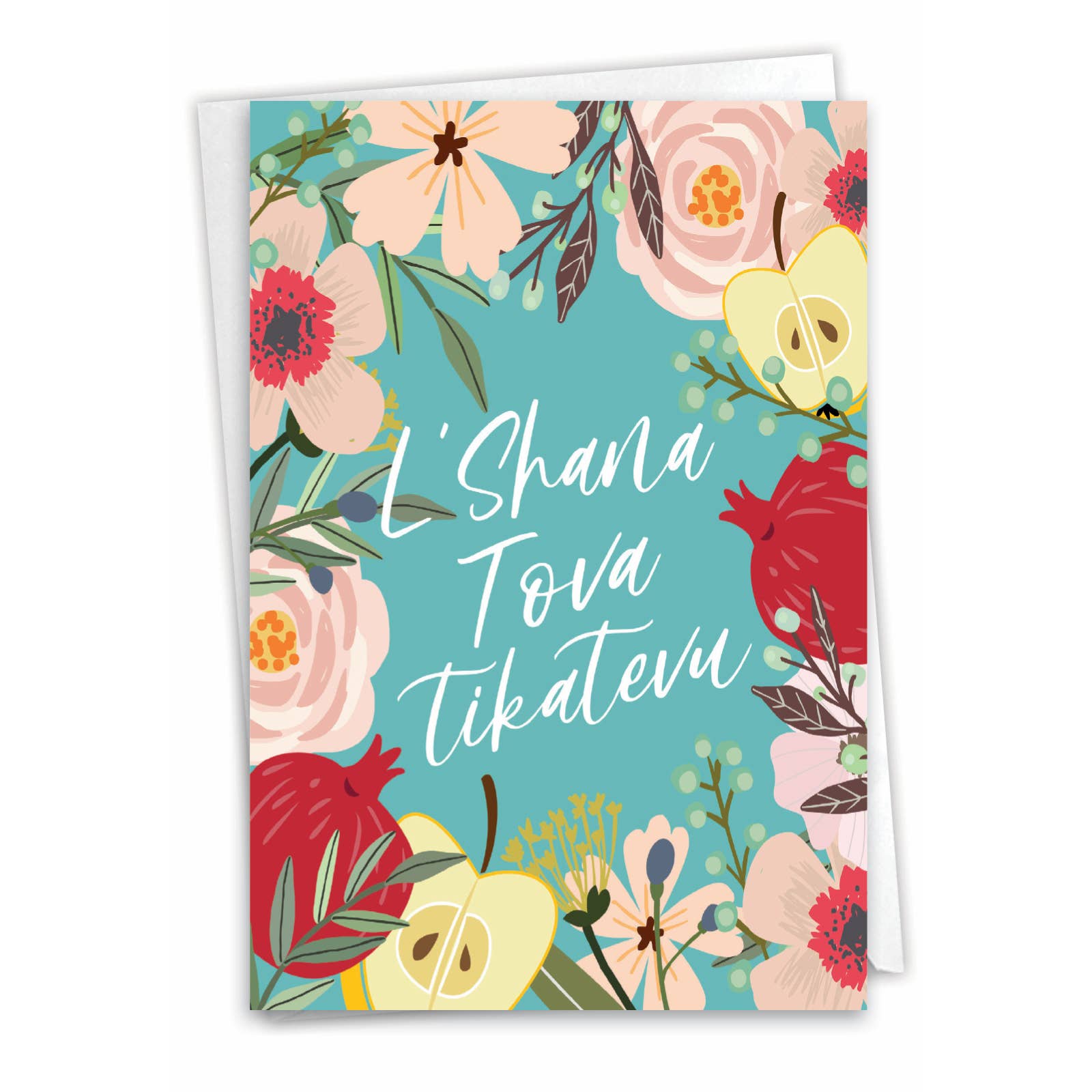 Rosh Hashanah Card - Granatæbler og blomster