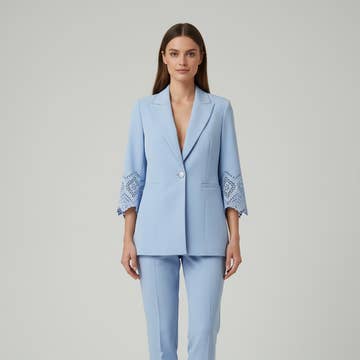 Spansk mode. Fremstillet i Spanien Dette jakkesæt består af bukser med lige ben og elastisk talje samt en slå-om jakke med bælte. Jakken har lange ærmer fremstillet i neokrepp med elasticitet Lavet i Spanien Fremstillet i et blødt, glat neokreppestof, kombinerer dette jakkesæt komfort og stil i lige dele. Dets sammensætning af 95% polyester og 5% elastomer sikrer fremragende holdbarhed og elasticitet, hvilket gør det til et perfekt valg både til særlige lejligheder og til hverdagsbrug. Tilføj et livligt touch til din garderobe med dette jakkesæt, der kombinerer holdbarhed med stræk for en perfekt pasform. Det er en uundværlig tilføjelse til enhver modegarderobe.
