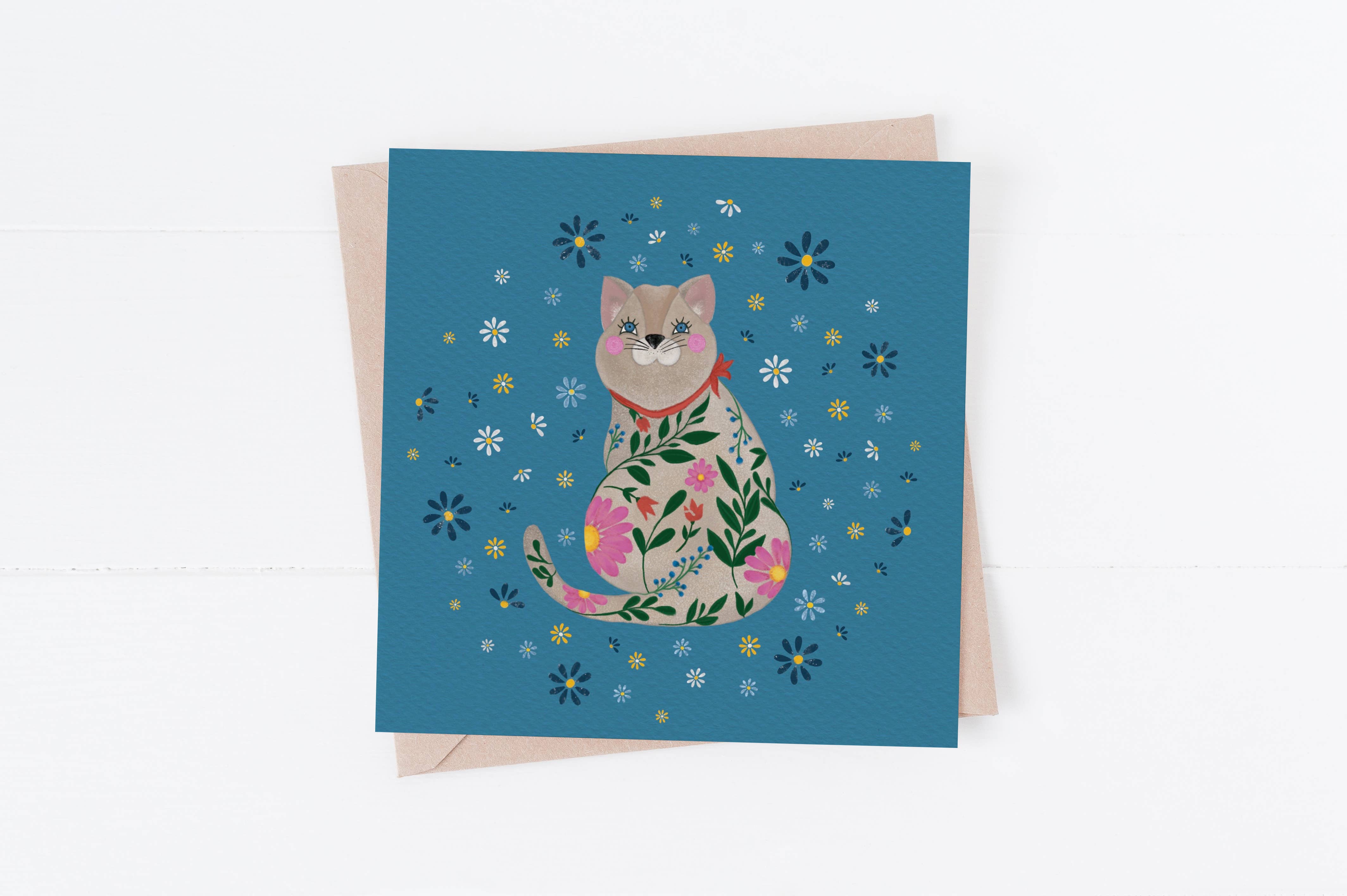 Hånd skitseret & farvet original illustration En vidunderlig måde at sige Happy Holiday til dine venner og familie Kort størrelse: Kvadrat- 5,8“ x5.8" (14.8x14.8cm) Dette kort er tomt inde for din egen personlige besked. Trykt på 300 GSM genbrugspapir af høj kvalitet. Bliver sendt med en genanvendt konvolut. Forseglet i en genlukkelig biologisk nedbrydelig cellobag.