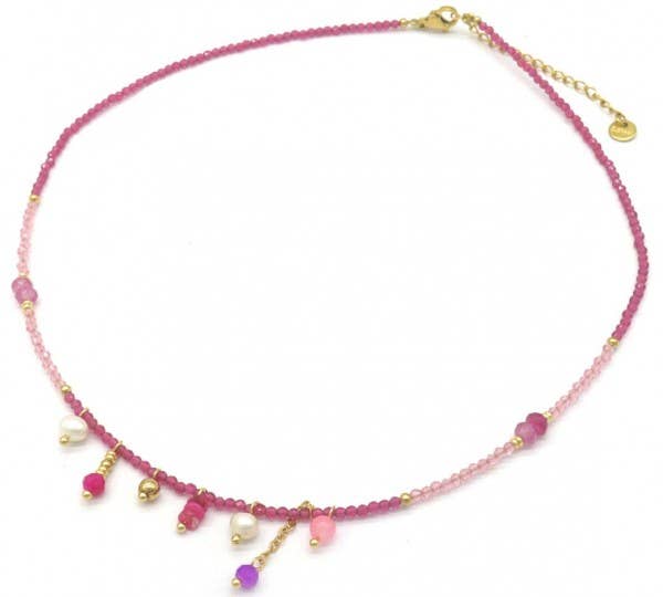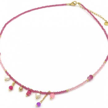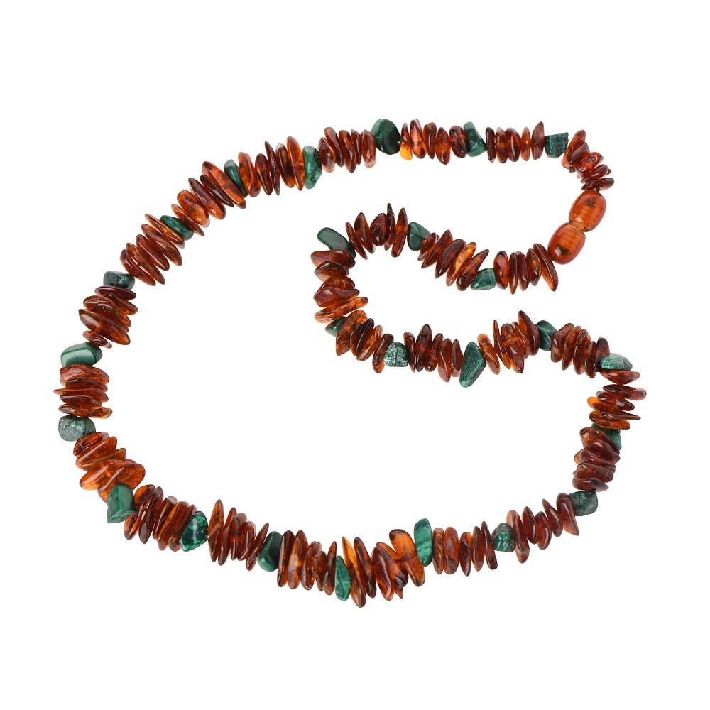 Halskæde med polerede ravperler i regnbuebarokstil