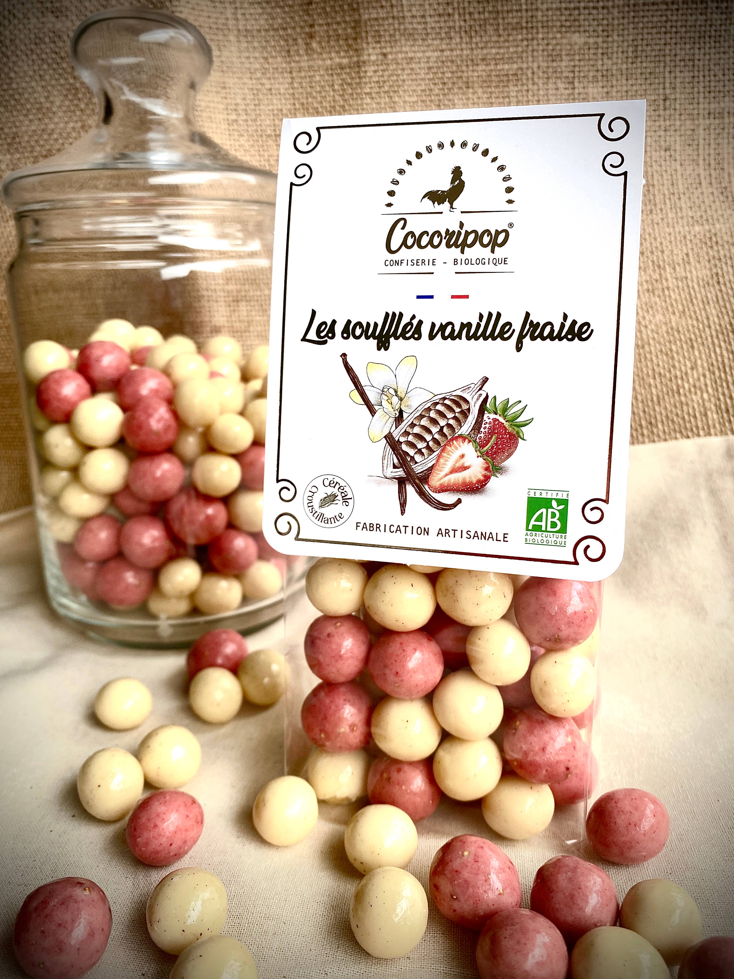 En ristet peanut, overtrukket med lækker chokolade og sukkerglaseret i seks farver. Den første håndværksmæssige og økologiske version af den berømte snack... Bløde og naturlige farver baseret på vegetabilske pigmenter (gurkemeje, spirulina, paprika, rødbede, plantebaseret kulstof). Et sandt konfekturmesterstykke, fremstillet med passion i vores værksted. En lækkert unik, sprød og gourmet opskrift. Sikret til at glæde dine kræsne gourmetkunder.