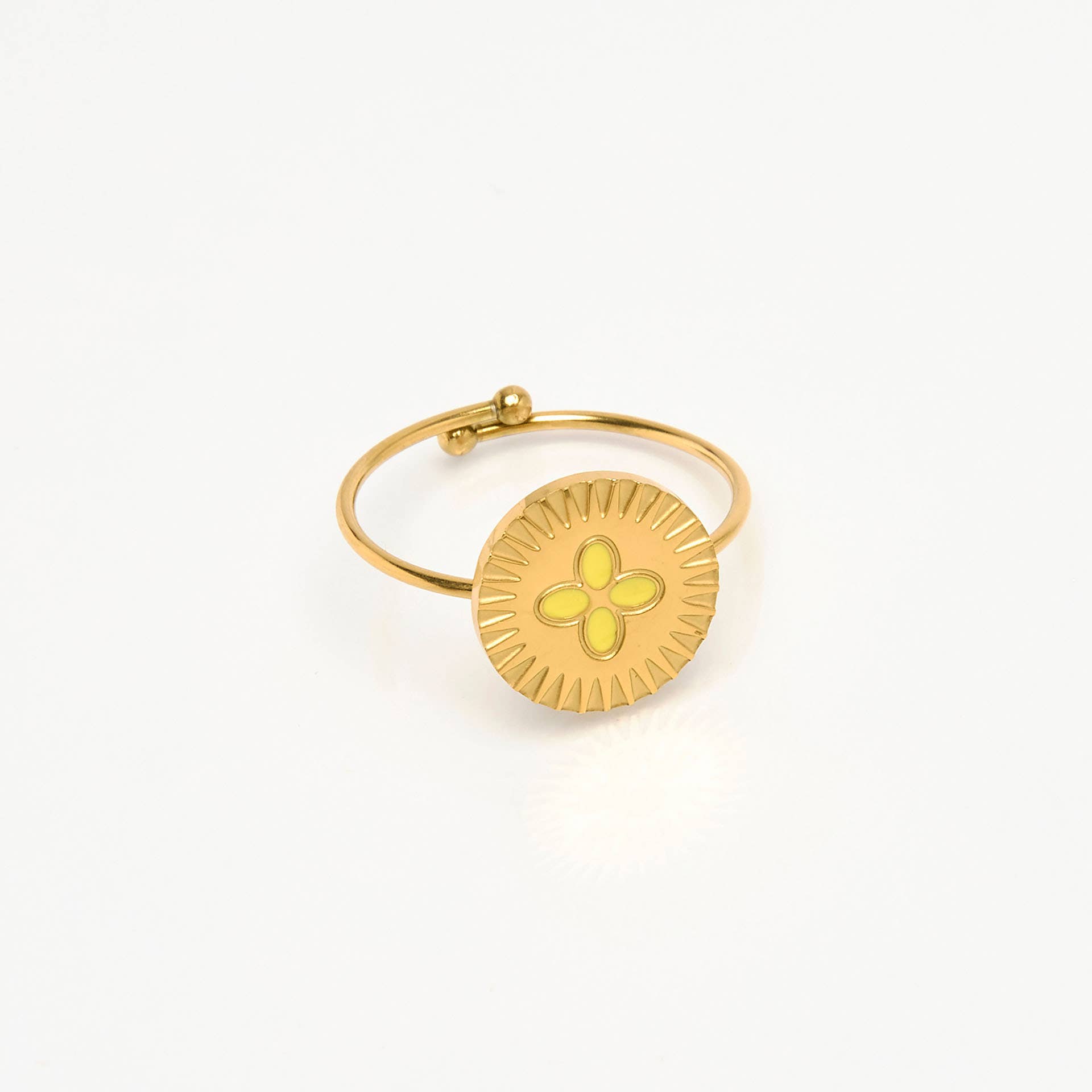 RB302 Guldbelagt rustfrit stålring, formet som et øje med en blåfarvet sten, justerbar.